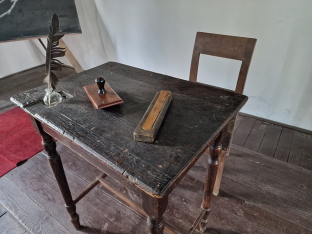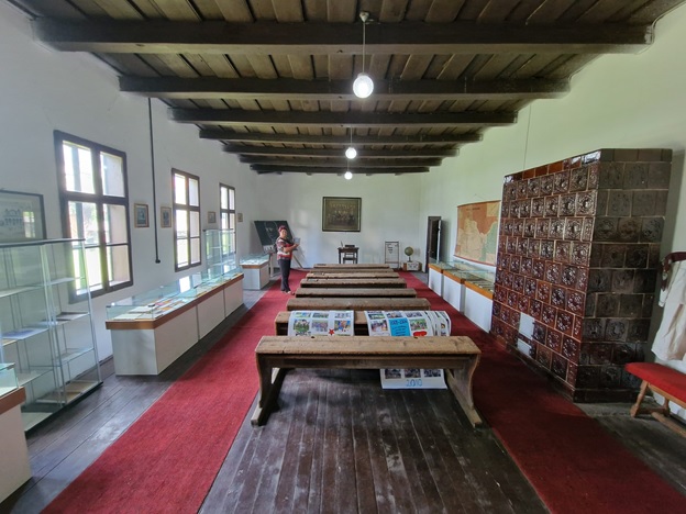 Aici, într-un mediu în care timpul parcă a încremenit, identificăm câteva aspecte simbolice care definesc conturul splendorii locului: singura sală de clasă în care se remarcă băncile, probabil printre cele mai afectate obiecte în acest „maraton” al timpului, datorită sutelor de suflete pe care le-au unit în vederea studierii limbii române, catedra dascălului împreună cu tabla pe care se află portretul lui Vasile Lucaciu, portul tradițional pe care lumea îl purta cu sfințenie, dar și materiale didactice. Pe lângă sala de clasă se află cancelaria, biblioteca în care sunt așezate mașina de scris și obiecte aparținătoare profesorului și sala cu memorandiști, în care regăsim pianul lui Octavian Goga dăruit Aureliei Rusu în semn de prețuire.