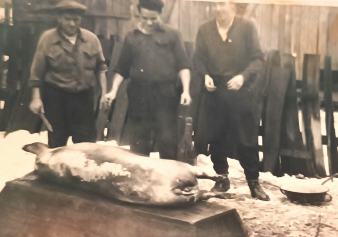 Tăierea porcului la Băiuț – poză anii 60 – sursă foto Zavalski Ildiko