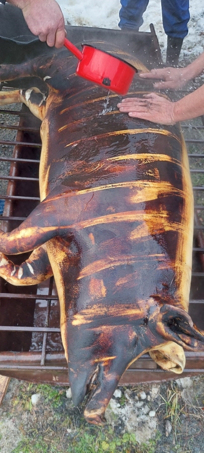 La Băiuț, după sacrificare, porcul este uns cu un preparat știut doar de ,,meșter”, iar apoi pârjolit și curățat bine cu peria.