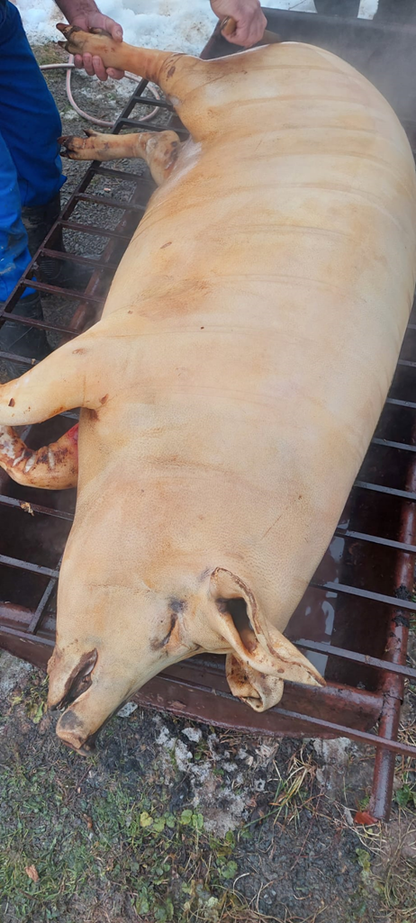 După această etapă mai ,,complexă”, urmează tranșarea porcului care începe pe burtă și nu pe spate cum întâlnim îm majoritatea cazurilor din alte locuri.