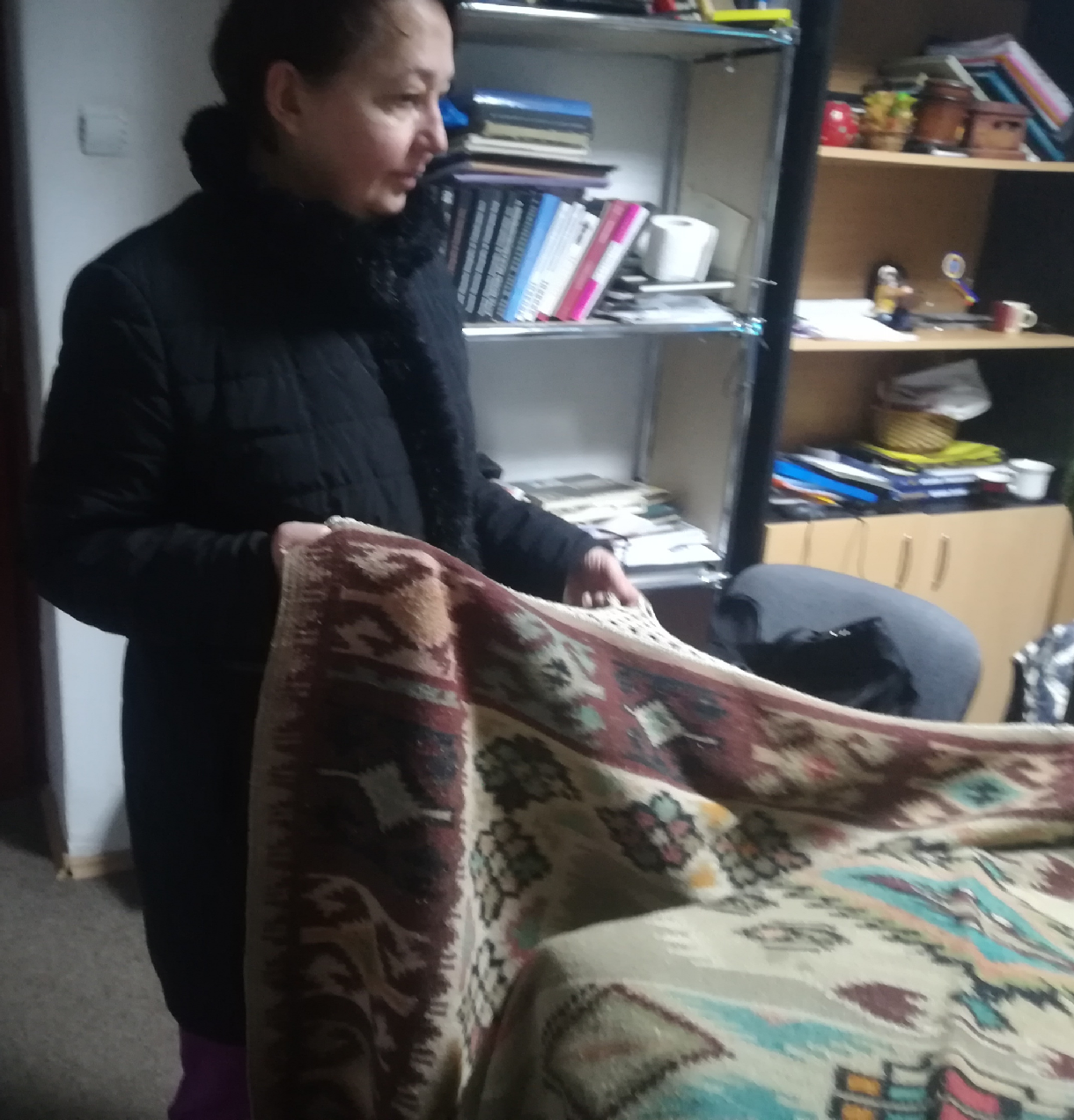 Covorul donat muzeului este ţesut din lână vopsită în culori naturale, are modele geometrice specifice, iar franjurii sunt legaţi manual din aţă de bumbac. Etnologul Janeta Ciocan afirmă că, datorită dimensiunii lor (2 x 3 m) asemenea covoare se ţeseau doar în războaie speciale, nu în cele obişnuite cum existau în majoritatea gospodăriilor ţărăneşti. „Iniţial, nu m-am gândit că o să-l donez muzeului, pentru că este o piesă cu o mare valoare sentimentală, dar am realizat că aici este mult mai în siguranţă, că se păstrează mult mai bine.” – consideră proprietara. „Cu siguranţă, la felul în care a fost păstrat, acest valoros covor donat muzeului nostru în chiar anul în care demarăm o serie de acţiuni dedicate Centenarului Unirii, va prinde şi aniversarea cu numărul 200” – a adăugat Janeta Ciocan. (D.G.B.)