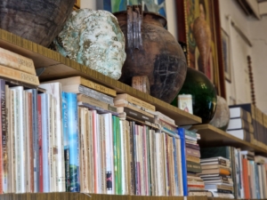 Am povestit cu Zsolt pendulând între cele două spații. Am pornit din Anticariat, am trecut strada la Galerie, ne-am întors în Anticariat. Un dialog între clădiri, despre aceste două lumi, pasiune, trecut, prezent, despre spiritul orașului și fascinanta mișcare artistică băimăreană numită Colonia Pictorilor.