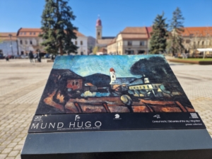 Ieșim din Anticariat. Schimbăm câteva ultime cuvinte. În parcarea din stânga, are loc un eveniment cu automobile retro. În față, se văd trei panouri cu reproduceri după lucrările de artă pictate cândva în acest loc. În spatele lor, grupul statuar dedicat întemeietorilor Coloniei Pictorilor. Iar mai departe, cupola roșie a Bisericii Reformate se conturează pe fundalul dealului care parcă începe să înverzească.