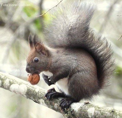 În Anglia veverița neagră tinde să fie o specie dominantă, fiind mult mai adaptată la mediu, renumiții cercetători britanici confirmând prin teste genetice originea americană a acestei varietăți de culoare. Nu știm care va fi rezultatul confruntării peste ani între veverița neagră și cea roșcată la noi în țară, deocamdată cea roșcată este în continuare varietatea dominantă în România. Dar dacă doriți să vedeți sprintena veveriță neagră oarecum la ea acasă, vă invităm la Băiuț, fără să uitați să aveți câteva nuci în buzunar.