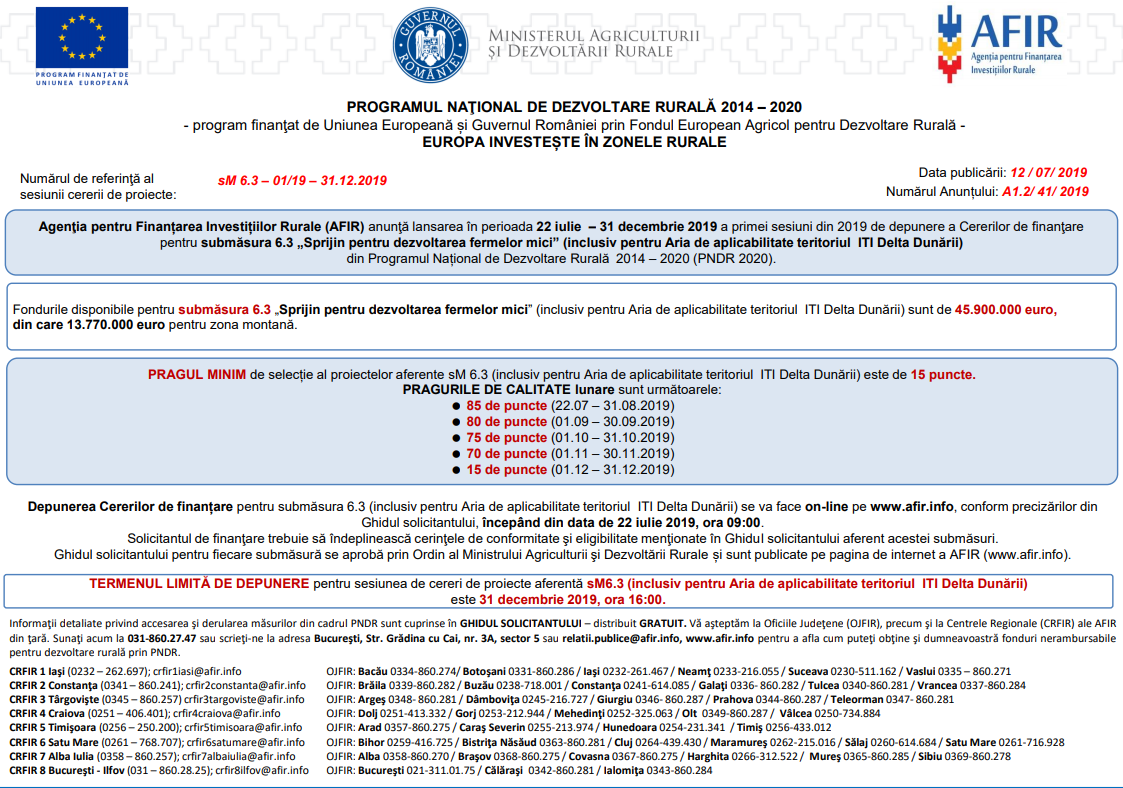 ”Sprijin pentru dezvoltarea fermelor mici”. Prima sesiune din 2019 pentru depunerea cererilor de finanțare începe în 22 iulie