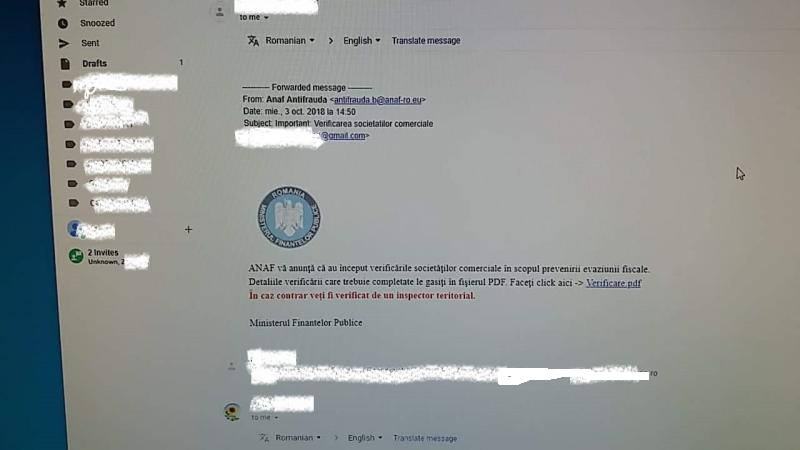 Agenția Națională de Administrare Fiscală atenționează că în numele acestei instituții s-au transmis e-mailuri false. Totodată, sfătuiești contribuabilii să nu transmită vreun reply sau să acceseze link-uri indicate în mesajele text în care este utilizat numele ANAF. ”Agenția Națională de Administrare Fiscală nu transmite e-mailuri contribuabililor pentru a anunța controale fiscale sau ale Direcției Generale Antifraudă Fiscală. Precizăm că ANAF informează contribuabilii cu privire la o viitoare inspecție fiscală printr-un aviz de inspecție, conform art. 102 din Legea nr. 207/2015 privind Codul de procedură fiscală, iar în cazul controalelor DGAF, acestea sunt inopinate și operative. În ultimele 24 de ore, persoane necunoscute au transmis în numele ANAF email-uri de la o adresă care nu aparține instituției noastre” – informează, într-un comunicat, Georgeta Timiș, purtător de cuvânt la Administrației Județene a Finanțelor Publice Maramureș.