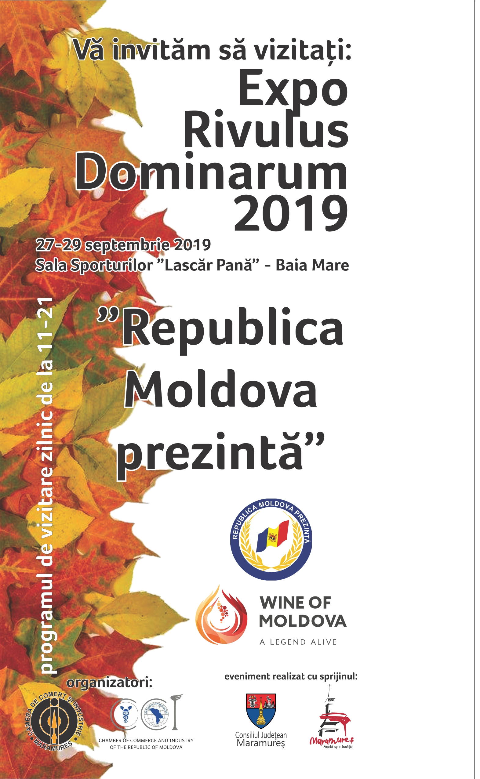 Peste 80 de companii din România, Republica Moldova, Ucraina și Slovacia participă, în perioada 27-29 septembrie 2019, la cea de-a XXVII-a ediție a expoziției de bunuri de larg consum ”Rivulus Dominarum”. Prin ediția din acest an, Camera de Comerț și Industrie Maramureș își propune să genereze o consolidare a relațiilor bilaterale și a oportunităților care pot contribui atât la promovarea agenților economici, cât și la dezvoltarea județului, din punct de vedere economic. Anul acesta, în premieră la Rivulus Dominarum, zeci de firme moldovenești își vor promova produsele pe piața maramureșeană în cadrul expoziției ”Republica Moldova prezintă”, eveniment realizat cu sprijinul Consiliului Județean Maramureș.