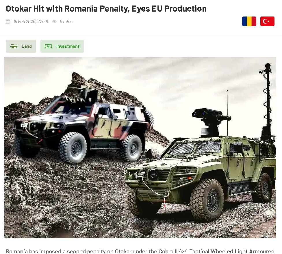 În noiembrie 2024, Otokar, una dintre principalele companii turcești din industria de apărare, a semnat un contract cu Romtehnica, compania națională românească aflată în subordinea Ministerului Apărării, pentru furnizarea a 1.059 de vehicule blindate ușoare de tip COBRA II 4×4. Valoarea acordului este de aproximativ 857 milioane de euro, fără TVA, iar primele 278 de vehicule urmau să fie produse în Turcia, restul în România, în parteneriat cu firme locale.