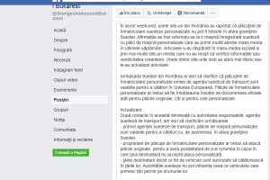 Colac peste pupăză, intră în joc și Ambasada Suediei la București care postează pe pagina sa de internet: ”Ambasada Suediei din România ar dori să clarifice că plăcuţele de înmatriculare personalizate emise de agenţia suedeză de transport sunt valabile pentru a călători în Uniunea Europeană. Plăcile de înmatriculare personalizate ar trebui să fie întotdeauna însoțite de documentele oficiale atât pentru plăcile originale, cât și pentru cele personalizate”. Presupun că, între timp, celor de la ambasada Suediei li se transmite de la Stockhom ceva de genul. ”Fiți mai diplomați. Vedeți că, în numărul de înmatriculare, la final e vorba de partidul care în 2001 a ratificat Acordul dintre România şi Suedia privind reglementarea pretenţiilor suedeze.pentru fabrica de chibrituri. Iar România a plătit 120 de milioane de dolari, în patru tranşe egale, datoria către noi fiind stinsă în totalitate în 2003, deși ne luasem gândul de la banii aștia. Așa că dați-o și voi mai pe după cireș, cum se spune pe acolo”. Și ambasada a dat-o pe după cireș printr-o actualizare, tot pe facebook.