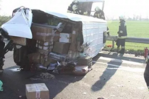 Săptămâna trecută, un român conducea o autoutilitară Mercedes pe autostrada maghiară M7. La aproape 65 km de Budapesta, lângă Székesfehérvár, șoferul a pierdut controlul volanului, mașina a lovit parapeții de pe marginea drumului și s-a răsturnat pe o parte. O persoană a fost rănită, iar mașina a fost serios variată, dar fără a-i fi afectat motorul.