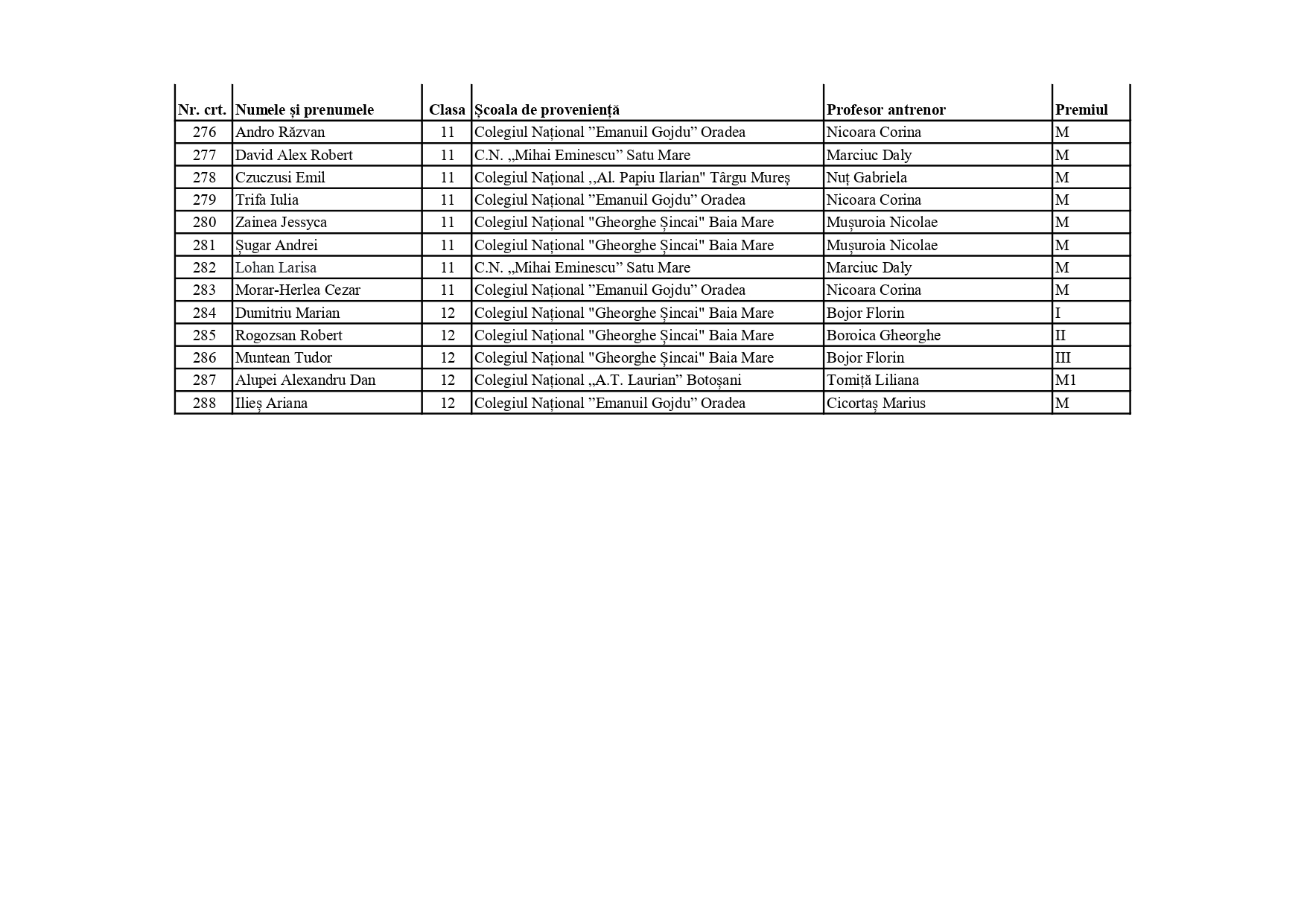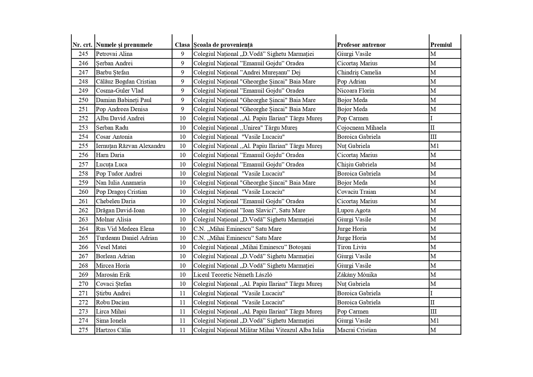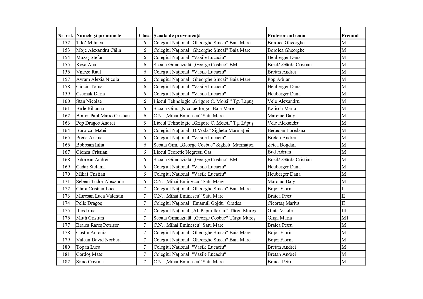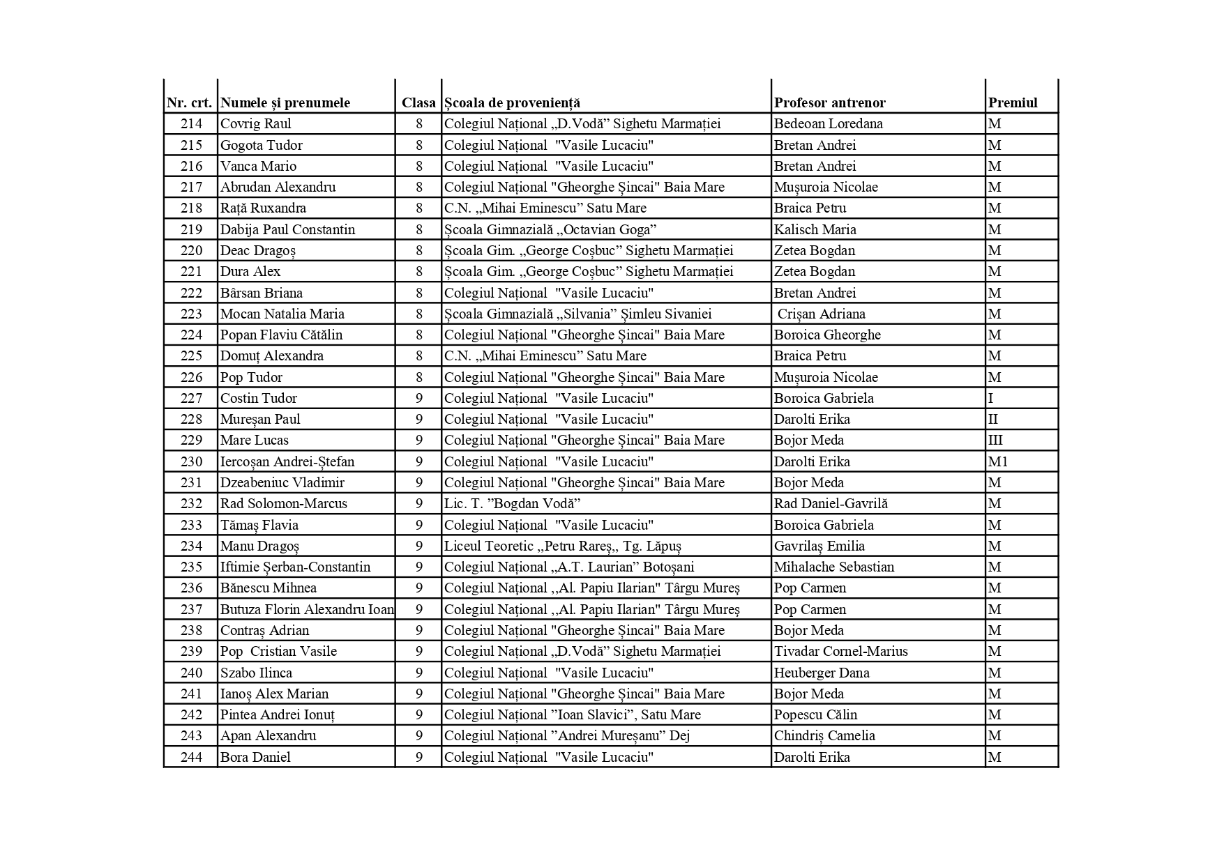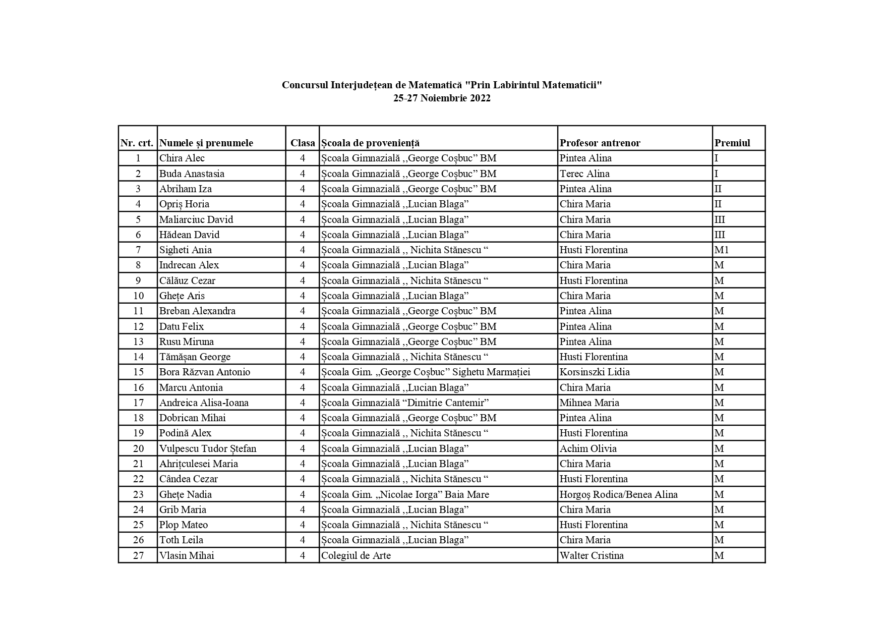 Mai jos aveți lista cu toți elevii care au obținut premii.