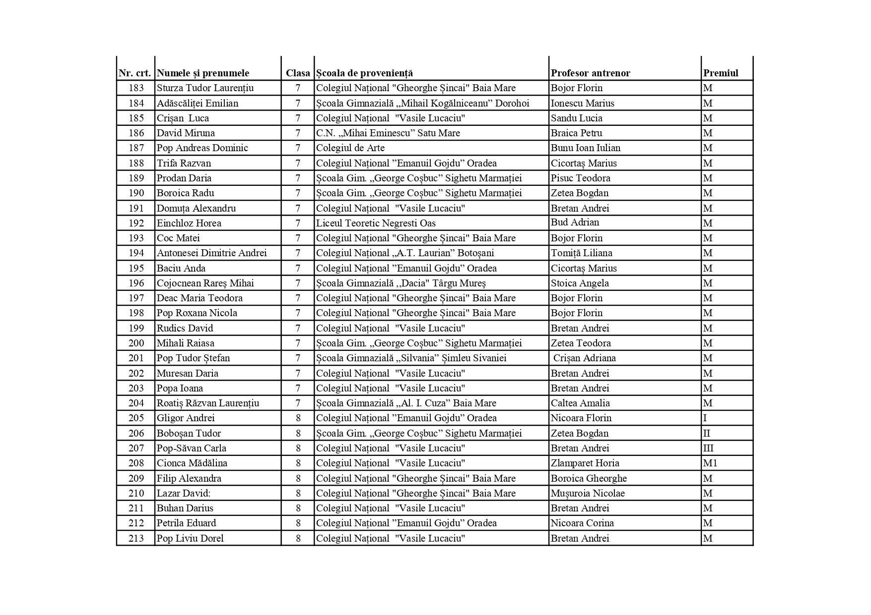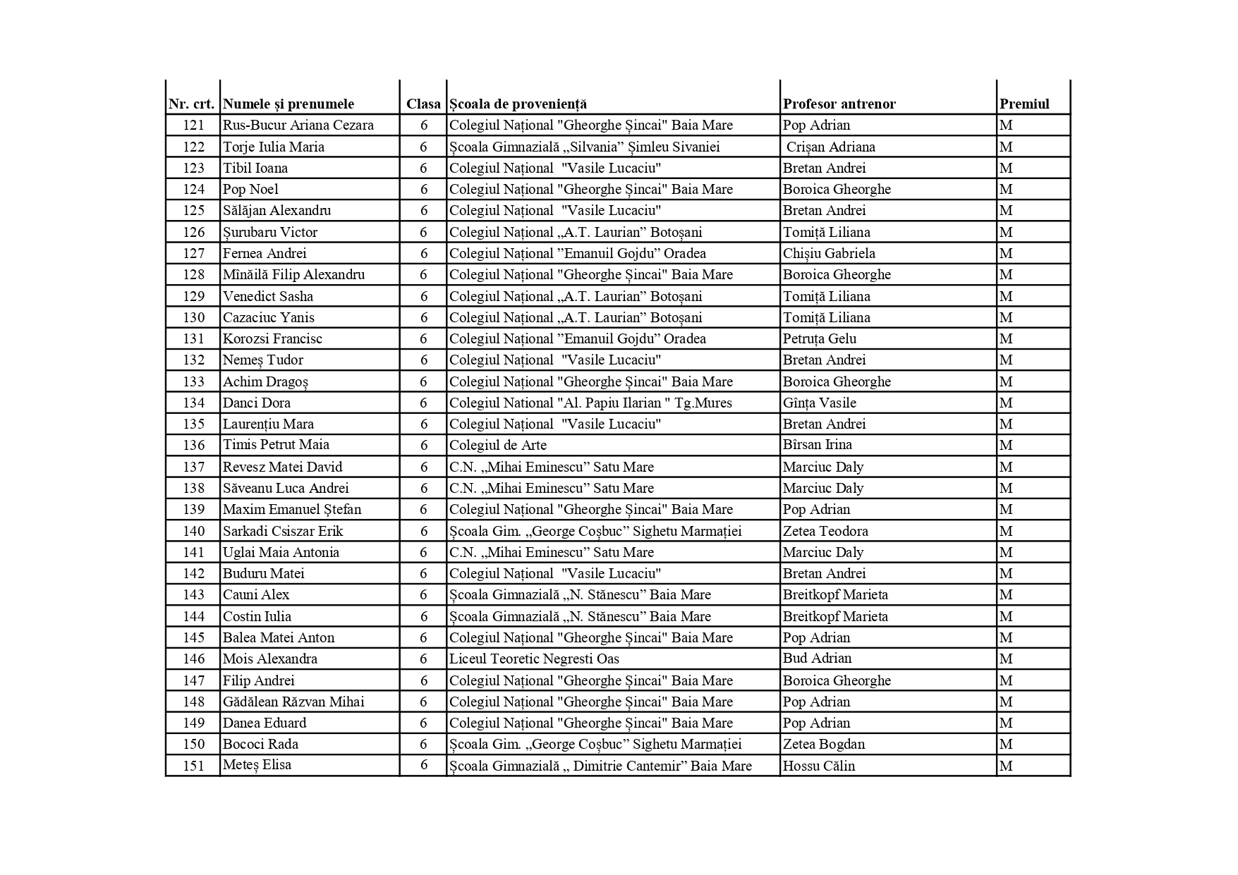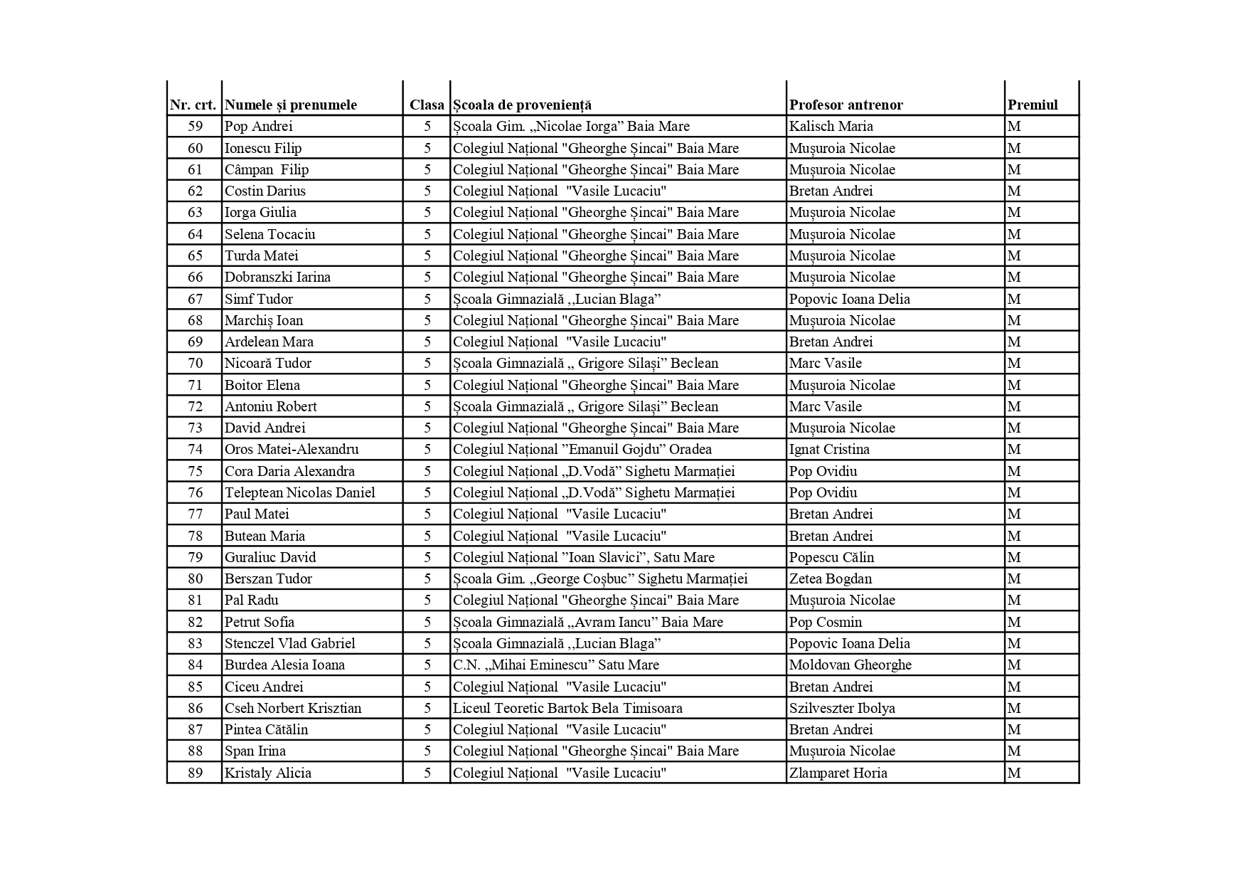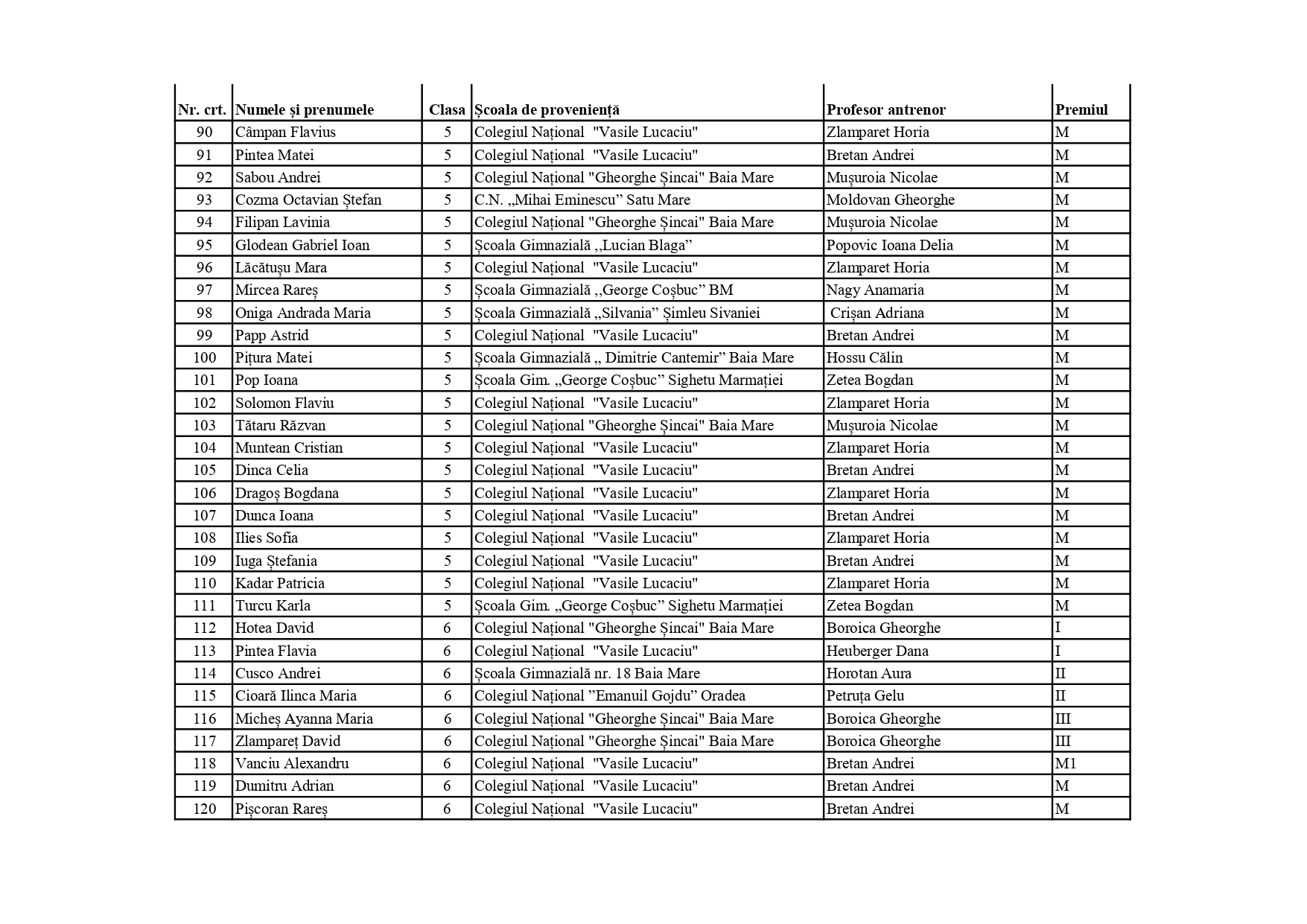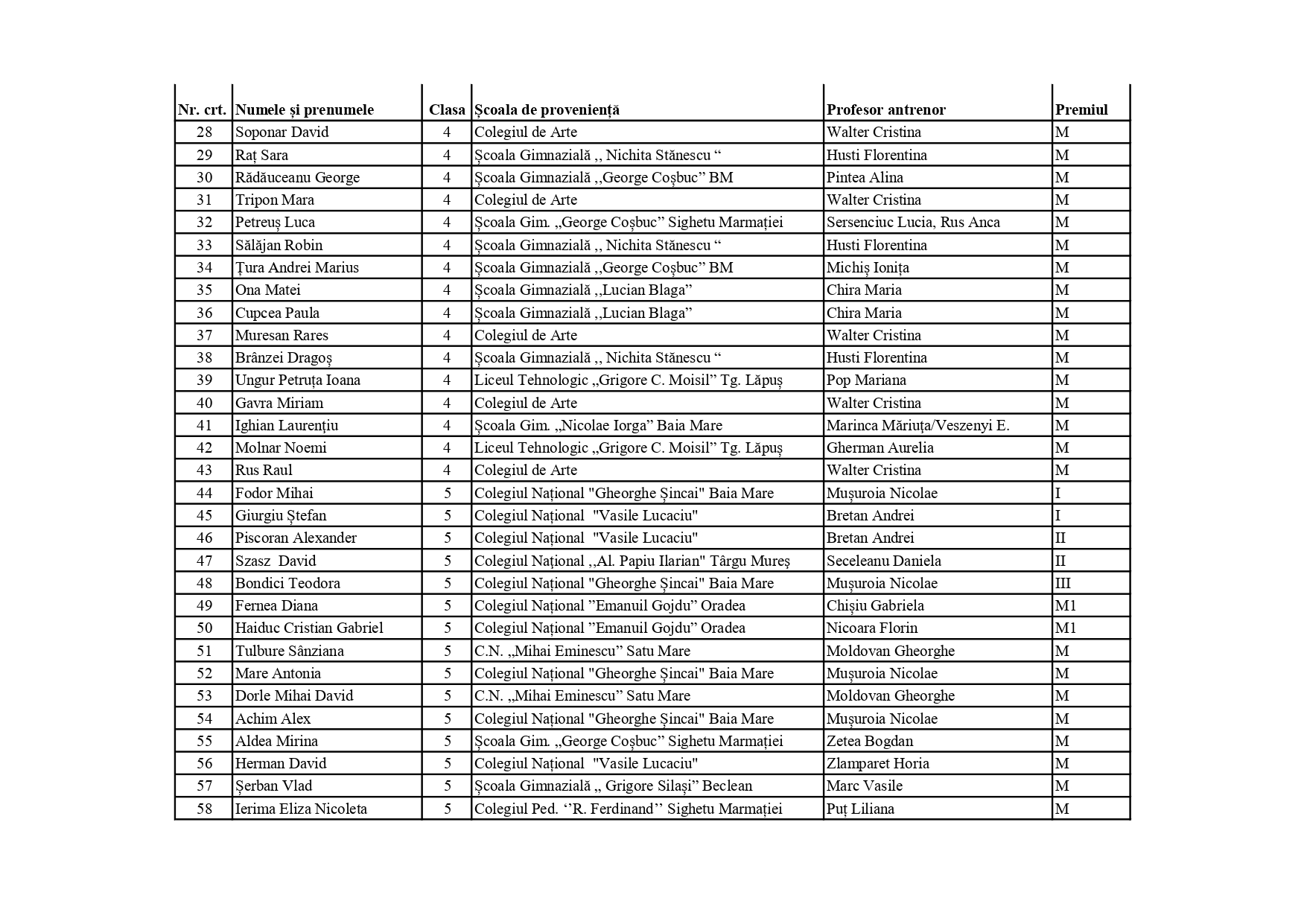Mai jos aveți lista cu toți elevii care au obținut premii.