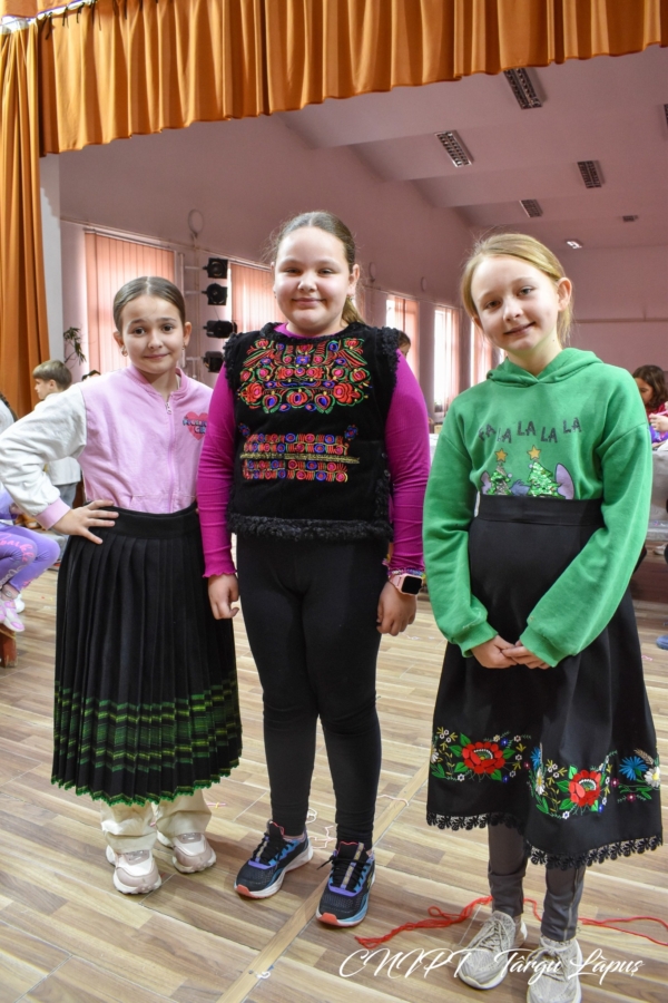 Copiii prezenți la atelierul „Șezătoare în Postul Mare” au învățat despre rochia de Rogoz, dar și despre pieptarul înfundat specific zonei Lăpușului