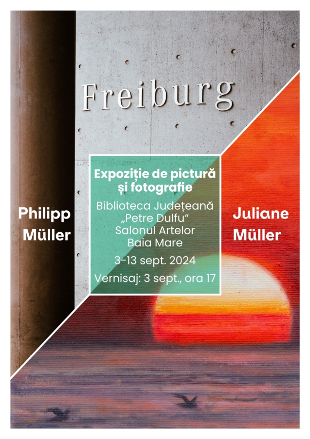 Marți, 3 septembrie, începând cu orele 17.00, în Salonul artelor a Bibliotecii Județene „Petre Dulfu” va avea loc vernisajul expoziției de pictură și fotografie a soților Juliane și Philipp Müller.