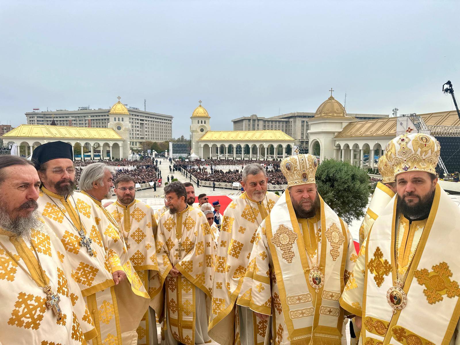 Pe esplanada din fața Catedralei Naționale au participat peste 8.000 de clerici și credincioși din eparhiile Patriarhiei Române.