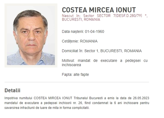 Costea a fost condamnat definitiv în mai 2023, dar în loc să se predea, a fugit din țară. După ce a fost dat în urmărire internațională, autoritățile l-au prins în februarie 2025, la Istanbul, cu sprijinul Interpol Ankara. Astăzi, a fost în cele din urmă extrădat și predat autorităților române.