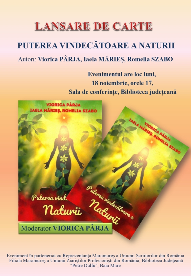 Luni, 18 noiembrie, ora 17.00, în Sala de conferințe a Bibliotecii Județene „Petre Dulfu” Baia Mare va avea loc lansarea volumului „Puterea vindecătoare a naturii”, autoare Viorica Pârja, Iaela