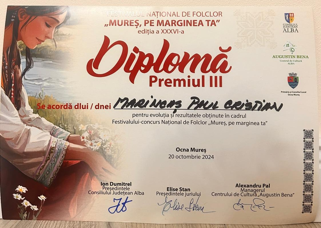 Paul Marincaș, premiul III la Festivalul Național de Folclor „Mureș, pe marginea ta”