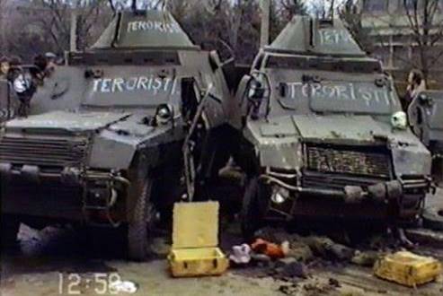 La intrarea pe șoseaua care ducea spre aerogară, asupra convoiului s-a declanșat un foc ucigător din trei direcții: de pe escada aeroportului, de pe clădirea Departamentului Aviației Civile și din fața aerogării. În câteva momente, 22 de tineri au fost uciși pe loc, iar alți șase au fost grav răniți. Panica și confuzia au fost alimentate de psihoza teroristă, întreținută de ordinele haotice și de comunicațiile greșite dintre diferitele unități militare.