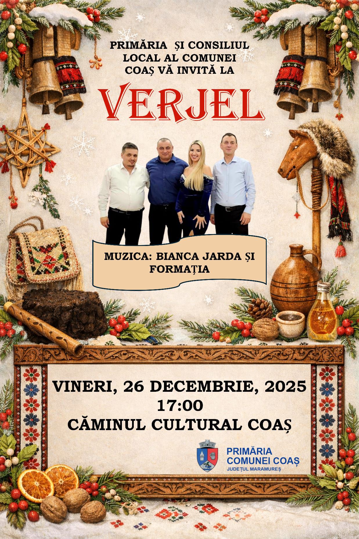 Vineri, 26 decembrie, a doua zi de Crăciun, la Coaș se organizează Verjel. Evenimentul va debuta la ora 17.00, la Căminul Cultural.