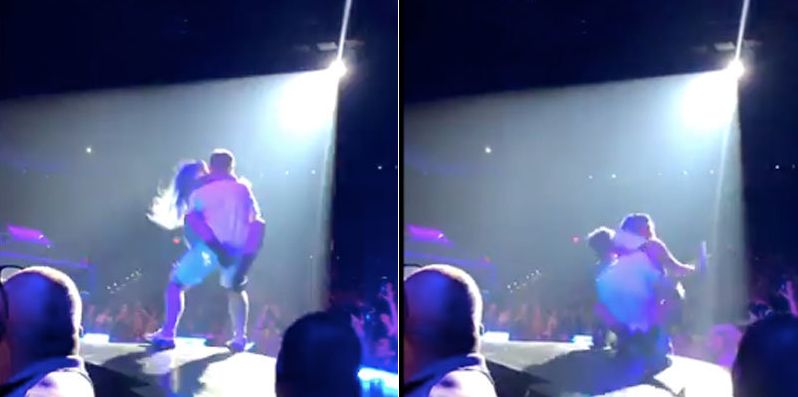 A căzut de pe scenă cu tot cu fanul căruia i s-a suit în brațe