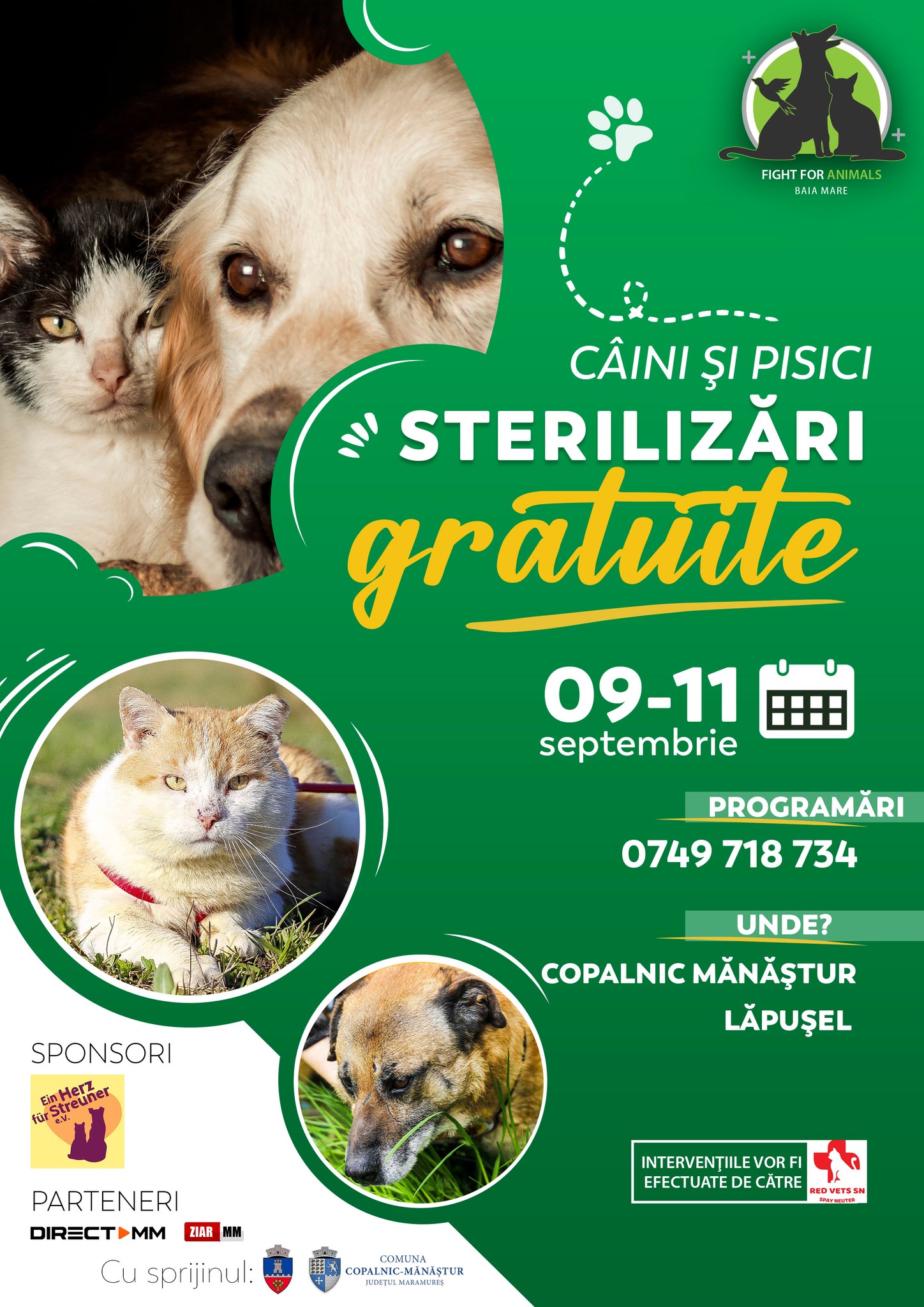 În 9-11 septembrie 2022: Fight For Animals Baia Mare, activa asociație care susține prietenii blănoși, are campanie sterilizări de pisici și câini!