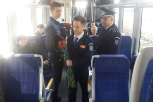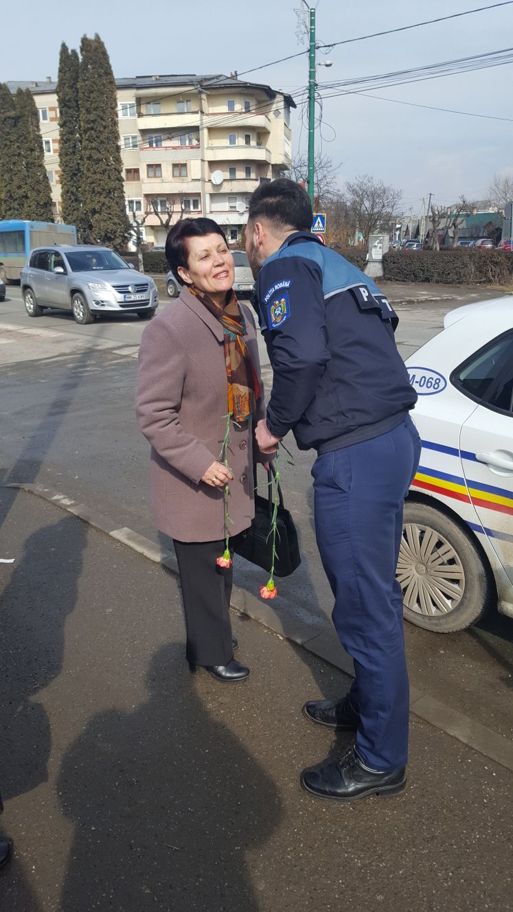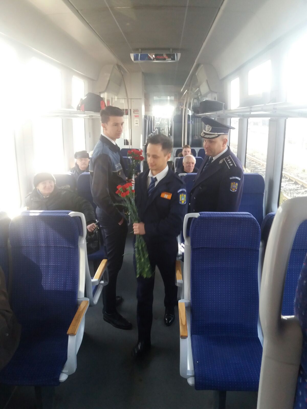 Nu au fost uitate nici doamnele şi domnişoarele care au călătorit azi cu trenul. Poliţiştii Biroului Transporturi Maramureş au respectat tradiţia şi, de la primele ore ale dimineţii ,le-au surprins plăcut, oferindu-le câte o floare, în semn de respect şi preţuire, .