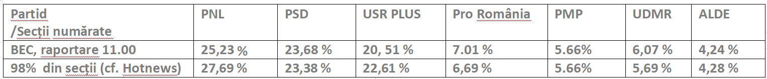 - Numărătoarea PNL; USR – 33%; PNL – 21,5%, PSD – 14%