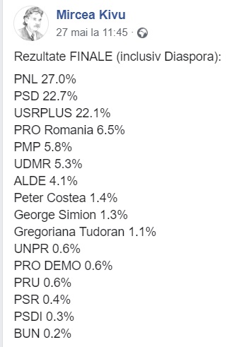 Mircea Kivu, cel care a anticipat atât de bine rezultatele finale ale votului, a sesizat o ciudățenie: ”Ciudat! În toate județele cu populație maghiară consistentă (Transilvania), UDMR a pierdut sau a obținut același număr de voturi, comparativ cu parlamentarele din 2016. În toate judetele din afara arcului carpatic, UDMR a obținut acum cel puțin dublul (uneori, chiar de 4-5 ori mai mult) numărului de voturi din 2016. Are cineva o explicație? Au fost regățenii atat de impresionati de «suspendarea» acordului cu PSD?”
