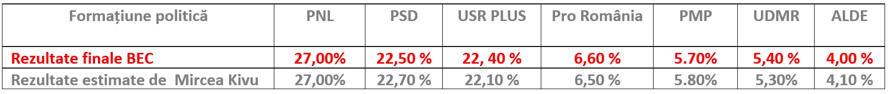 BEC a anunțat rezultatele oficiale care sunt foarte apropiate de cele estimate de sociologul Mircea Kivu, in prima parte a zilei de 27 mai.