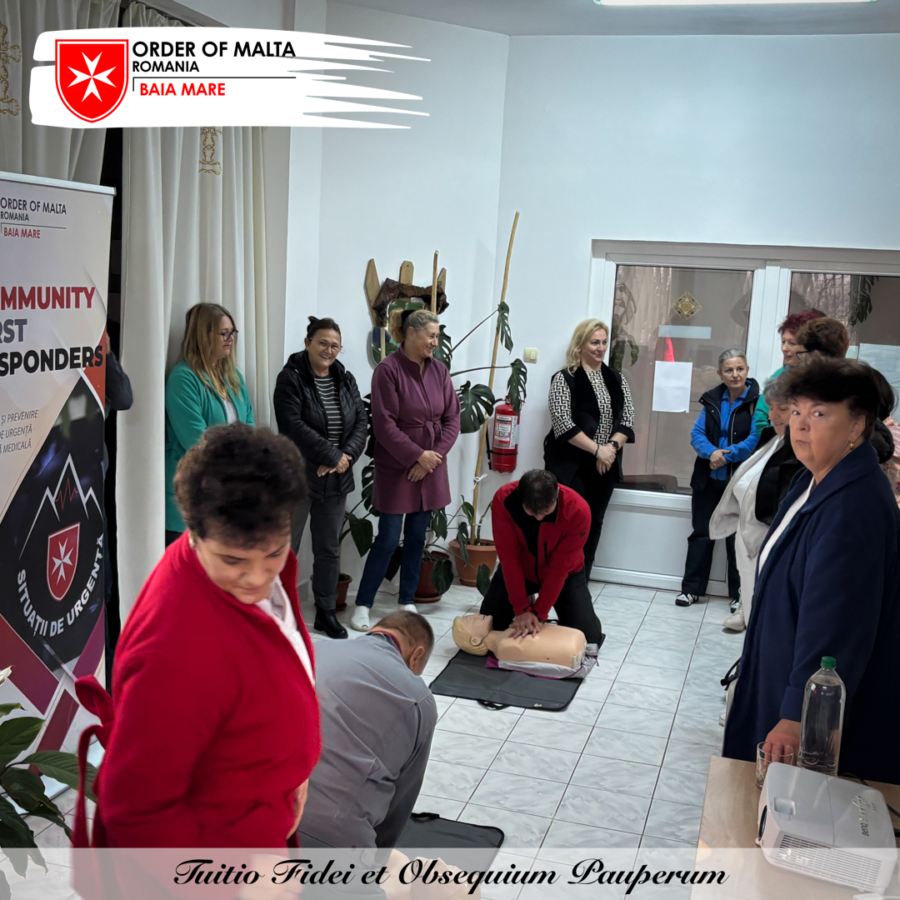 Voluntarii de la Serviciul de Ajutor Maltez Baia Mare au fost alături de personalul angajat al Căminului pentru Persoane Vârstinice din Baia Sprie, în cadrul cursului de pregătire teoretică și practică a deprinderilor și tehnicilor de acordare a primului ajutor de urgenţă.
