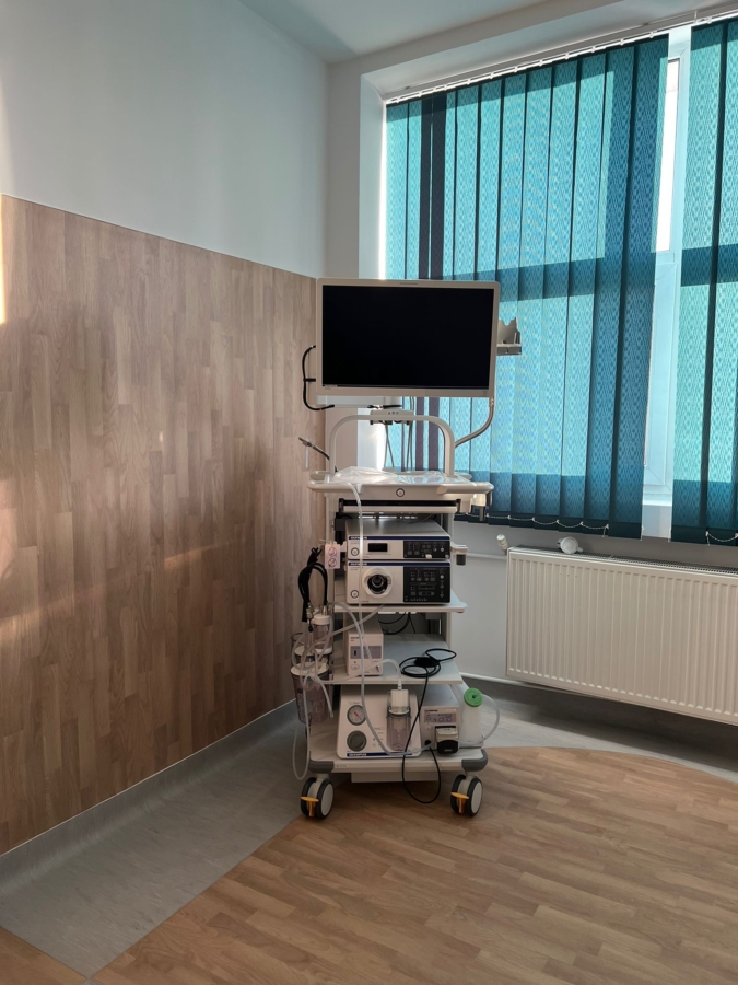 Linie completă de video-gastroscopie și video-colonoscopie: în valoare de 928.200 lei (TVA inclus), achiziționată în ianuarie 2025. Această tehnologie avansată permite vizualizarea detaliată a mucoasei tractului gastro-intestinal, facilitând diagnosticarea precoce a afecțiunilor precum ulcere, gastrite, esofagite, sângerări și tumori. De asemenea, permite efectuarea unor proceduri terapeutice minore în timpul gastroscopiei, reducând necesitatea intervențiilor chirurgicale invazive. Procedura este rapidă și minim invazivă, ceea ce duce la o recuperare mai rapidă a pacientului.