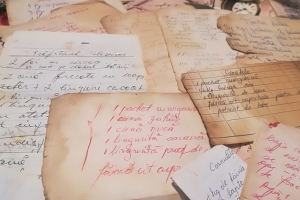 Dar lucrurile n-au stat întotdeauna aşa… Nu s-au scurs, în fond, prea mulţi ani de când internetul ne-a invadat viaţa, timpul şi spaţiul, cu bunele şi relele lui, şi de când ne salvează din penele de inspiraţie. Cu ani în urmă, reţetele de prăjituri, murături şi aperitive sofisticate erau scrise în caiete speciale, păstrate în dulapurile din bucătărie şi consultate doar la ocazii speciale. Cu scrisul adesea grăbit, fără pretenţii de ortografie sau acurateţe a exprimării, unse, pătate, cu miros uşor rânced de ulei, cu foile desprinse, cu altele adăugate, caietele de prăjituri au parfum de copilărie şi de sărbători.