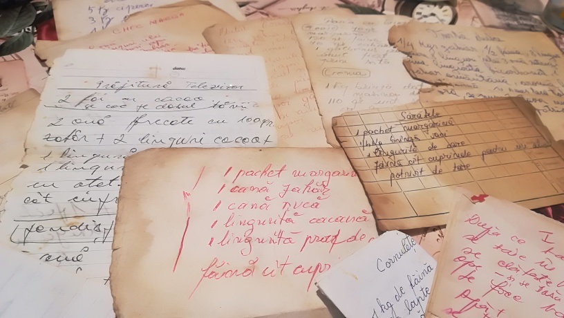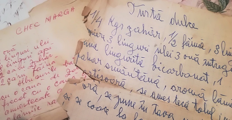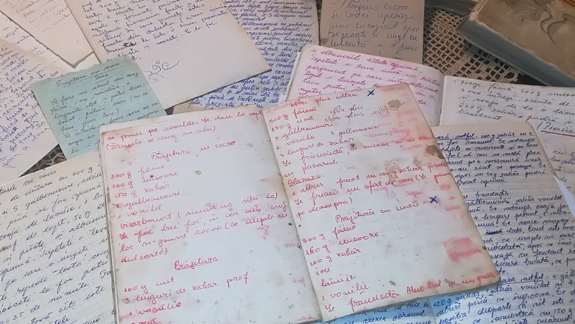 Dar lucrurile n-au stat întotdeauna aşa… Nu s-au scurs, în fond, prea mulţi ani de când internetul ne-a invadat viaţa, timpul şi spaţiul, cu bunele şi relele lui, şi de când ne salvează din penele de inspiraţie. Cu ani în urmă, reţetele de prăjituri, murături şi aperitive sofisticate erau scrise în caiete speciale, păstrate în dulapurile din bucătărie şi consultate doar la ocazii speciale. Cu scrisul adesea grăbit, fără pretenţii de ortografie sau acurateţe a exprimării, unse, pătate, cu miros uşor rânced de ulei, cu foile desprinse, cu altele adăugate, caietele de prăjituri au parfum de copilărie şi de sărbători.