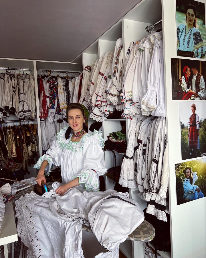 Astfel, pas cu pas, am tot descoperit prin poduri, beciuri, prin lăzi uitate și nedeschise de zeci de ani, prin șuri, sub fân și chiar în cușca câinelui, costume populare, dar nu orice fel, cele originale, făcute pentru familie.