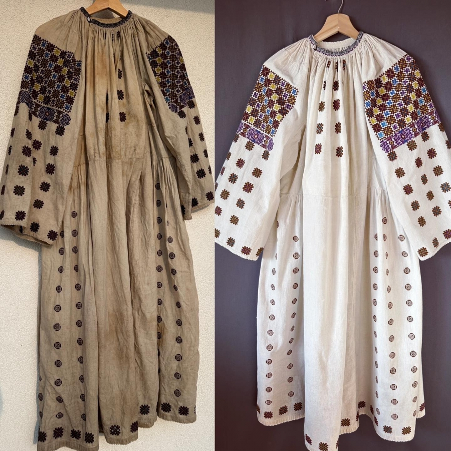 Vreau să mai menționez că nu există o anume rețetă de curățare, iile nu sunt universale, sunt toate produse unicat, fiecare având alte criterii: pânză diferită, vechime diferită, sunt cusute cu alte ațe, au un alt grad de murdărie, iar natura petelor e diversă. Nu am învățat undeva să fac asta, să aducă la stadiul purtabil și pentru cei mai pretențioși, dar am dobândit de-a lungul anilor experiență, prin exercițiu, prin încercări cu reușite și eșecuri, prin pasiunea continuă, timp investit și perseverență. De altfel, cum face tot omul care e determinat să reușească. Odată ce am însușit atâta practică, îmi e mai lejer, însă nu mi-a fost mereu așa. Consider ca fiecare se poate regăsi în ceea ce scriu, indiferent de domeniul de activitatea.