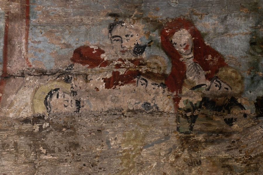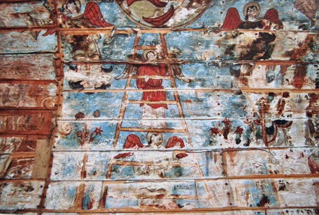 Conexiunea dintre pictură și lemn, precum și minuțiozitatea lucrării, ne sunt explicate de către restauratorul de pictură Dorin Handrea, care susține că diferențele în comportamentul și proprietățile materialelor, determină exfolierea picturii. Astfel, aflăm că pictorul când a pictat în interior, a găsit niște grinzi între care erau niște spații. Acesta a luat niște șiță care a rămas nefolosită la acoperiș, a crăpat-o și a acoperit spațiile dintre grinzi, urmând ca mai apoi să lipească pânză. Aceasta a pus-o tocmai pentru a avea o continuitate a câmpului pictural, să fie un câmp integral. Există aici câteva fisuri care ar trebui închise pentru ca schimbul dintre interior și exterior să se facă un pic mai lent, ceea ce dă timp picturii să se acomodeze la schimbările de microclimat. Pictura este un element inert, este suport de ipsos pe perete. Acesta în schimb este viu, lemnul absorbind umiditatea pe care o cedează în fiecare zi. Are niște mișcări, spune restauratorul, care ulterior duc la exfolierea picturii fiind două corpuri străine care se resping unul pe celălalt. Pictura nu poate să se acomodeze mișcărilor lemnului în totalitate și atunci ea este expulzată, aceasta fiind teoria stării de conservare pentru monument. În ceea ce privește restaurarea propriu-zisă, aflăm de la intervievații noștri că în acest proces, rolul lor nu este acela de a face pictura din nou, ci de a face câteva integrări cromatice în zonele în care pictura a căzut, unde-și doresc să dea ca o sugestie ochiului în a reîntregi scena respectivă. Redau posibilitatea vizitatorilor, spun ei, de a lega niște puncte, niște linii ca să aibă impresia cel care vede că este o scenă și poate să o citească.