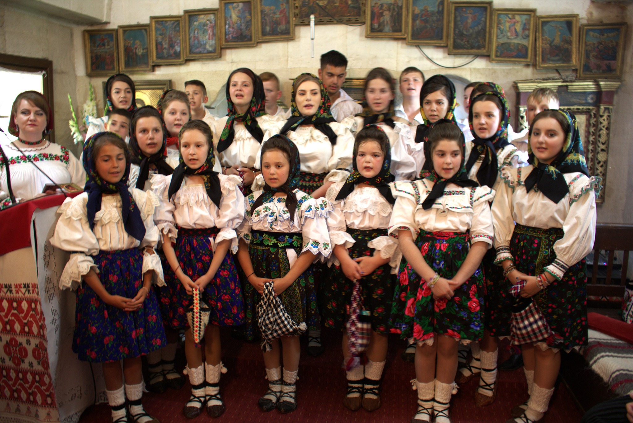 Icoane pe sticlă, costume tradiționale, podoabe din mărgele