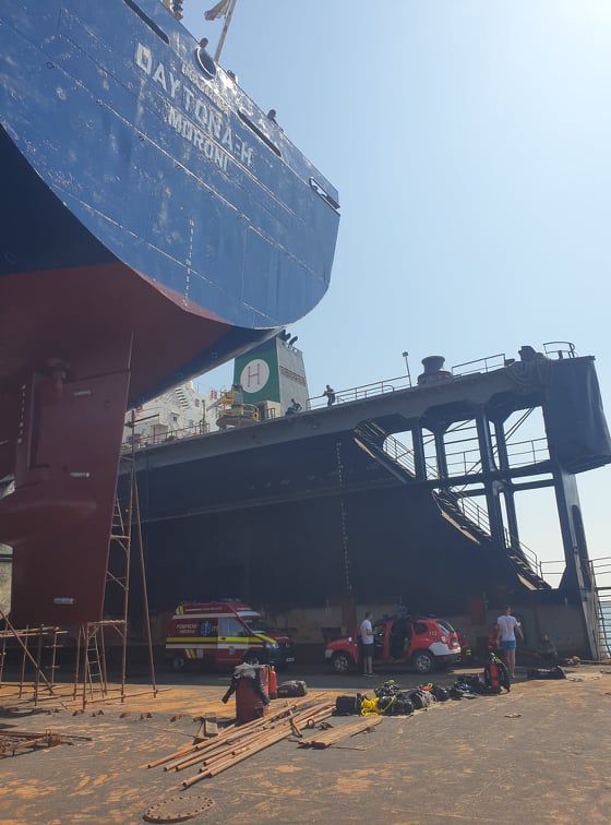 Așa s-a întâmplat și cu cei doi scafandri ai ISU Maramureș, care sunt implicați în această perioadă în misiuni de salvare pe litoral. Să nu vă închipuiți că aceasta a fost singura. Spre exemplu, zilele trecute, aceștia au căutat un muncitor al portului Midia căzut între nave. Aproximativ în același loc în care, ulterior, în 2 iulie, a avut loc acea explozie. Atașat acestui material puteți urmări imagini de la cele două intervenții, mai sus de la Portul Constanța, iar mai jos de la Petromidia Năvodari.