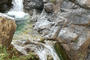 Oprim în Litochoro oraşul de piatră, construit de oameni bogaţi, cu case frumoase şi străzi pavate, de nevoie, cu cuburi de granit. Asfaltul a fost mereu luat de ploi, oraşul fiind în pantă. Lăsăm în urmă casele mari cu pisici imense, tăvălite în curţi, cu câini bucuroşi de oaspeţi, iar drumul se îngustează, apar gospodării cu capre şi oi. Nişte capre roşiatice ne privesc curios de pe o fundaţie de beton construită sub un castan. Pe un soare crud urcăm spre ”Cada lui Zeus”, locul unde legenda supune că el îşi ducea pământenele, pentru a se feri de ochiul aprig al Herei. Mai spectaculos decât ochiul de apă turcoaz în care se îmbăia zeul este drumul până acolo, prin Parcul Naţional Olimp, pe poteca nu foarte lată, dar bine amenajată cu dale de beton. Mergem pe marginea canionului, printr-un peisaj superb, tentaţi să privim mai degrabă în sus, spre piscurile conturate pe cerul adânc, decât spre prăpastia care se cască sub picioarele noastre. În faţa noastră apare un pod pe care suntem nevoiţi să trecem. Nu putem merge decât înainte. Din faţă vine un alt grup: femei cu fuste şi saboţi cu toc, cărucioare cu copii. Risc şi privesc în jos. Văd spaţiile dintre dalele de piatră şi mi se face frică. Trec pe pod în vârful picioarelor şi aproape cu ochii închişi. Scăpăm de pod şi ajungem în apropierea punctului final, dar înainte trebuie să trecem pe nişte scări construite direct în piatra muntelui. Simt că-mi pierd răbdarea, dar ajungem. Curajoşii trec peste balustrada pentru a-şi face poze mai aproape de cascadă. Coborâm. Caprele roşii, par că nu s-au mişcat din loc, privindu-ne cu aceeaşi curiozitate. Ne îmbarcăm pentru a face apoi un popas la Mănăstirea Sfântul Dionisie, construită în secolul XVI, dar şi la muzeul acesteia, unde sunt raclele cu părţi din moaştele a peste 300 de sfinţi. Tot aici, există un disc de metal dăruit mănăstirii de Ştefan cel Mare. Ascultăm povestea călugărului în biserică, tradusă pe rând de cele două însoţitoare, în timp ce fata cu tricou verde adoarme într-unul din jilţurile din faţa altarului.