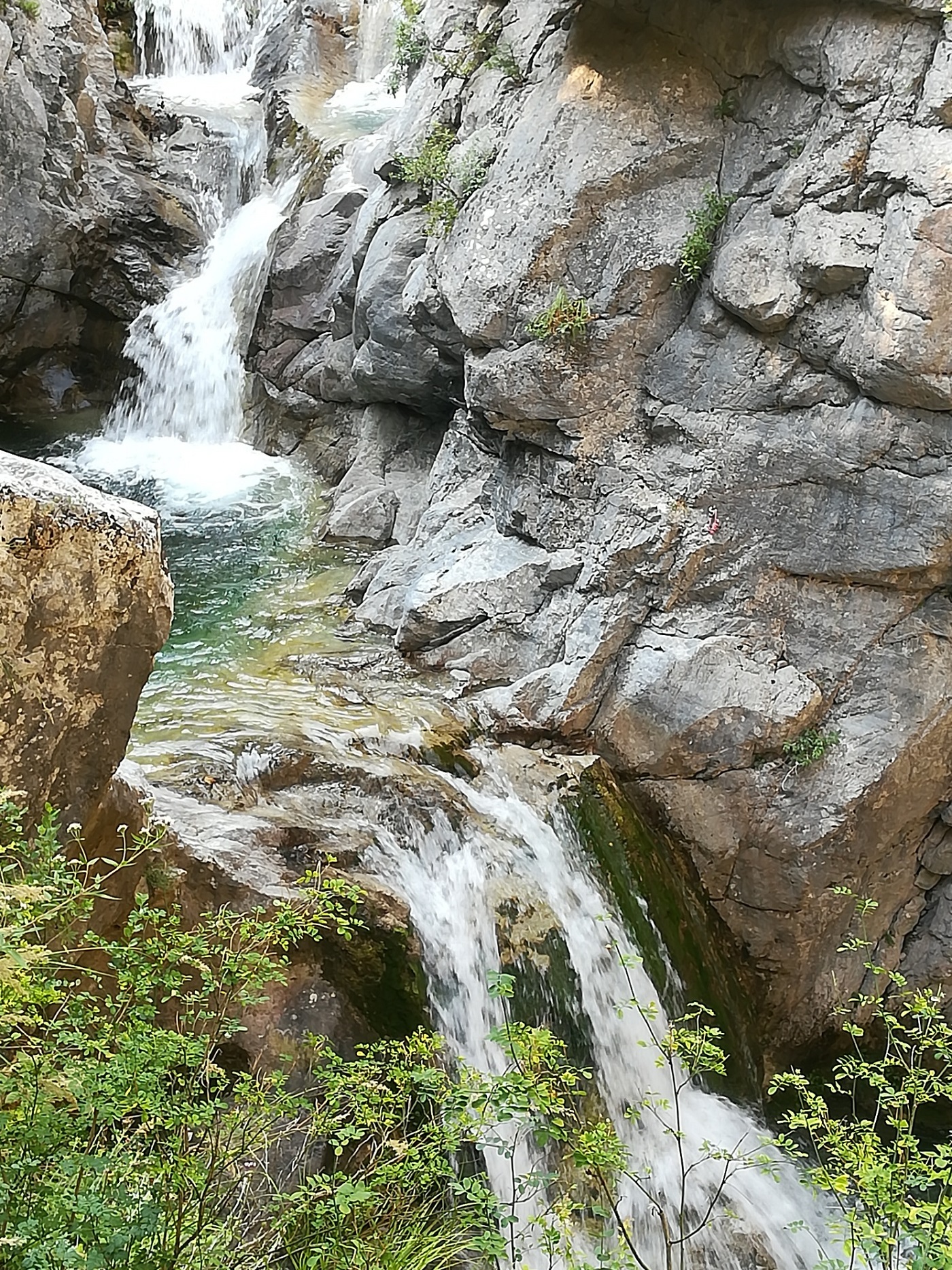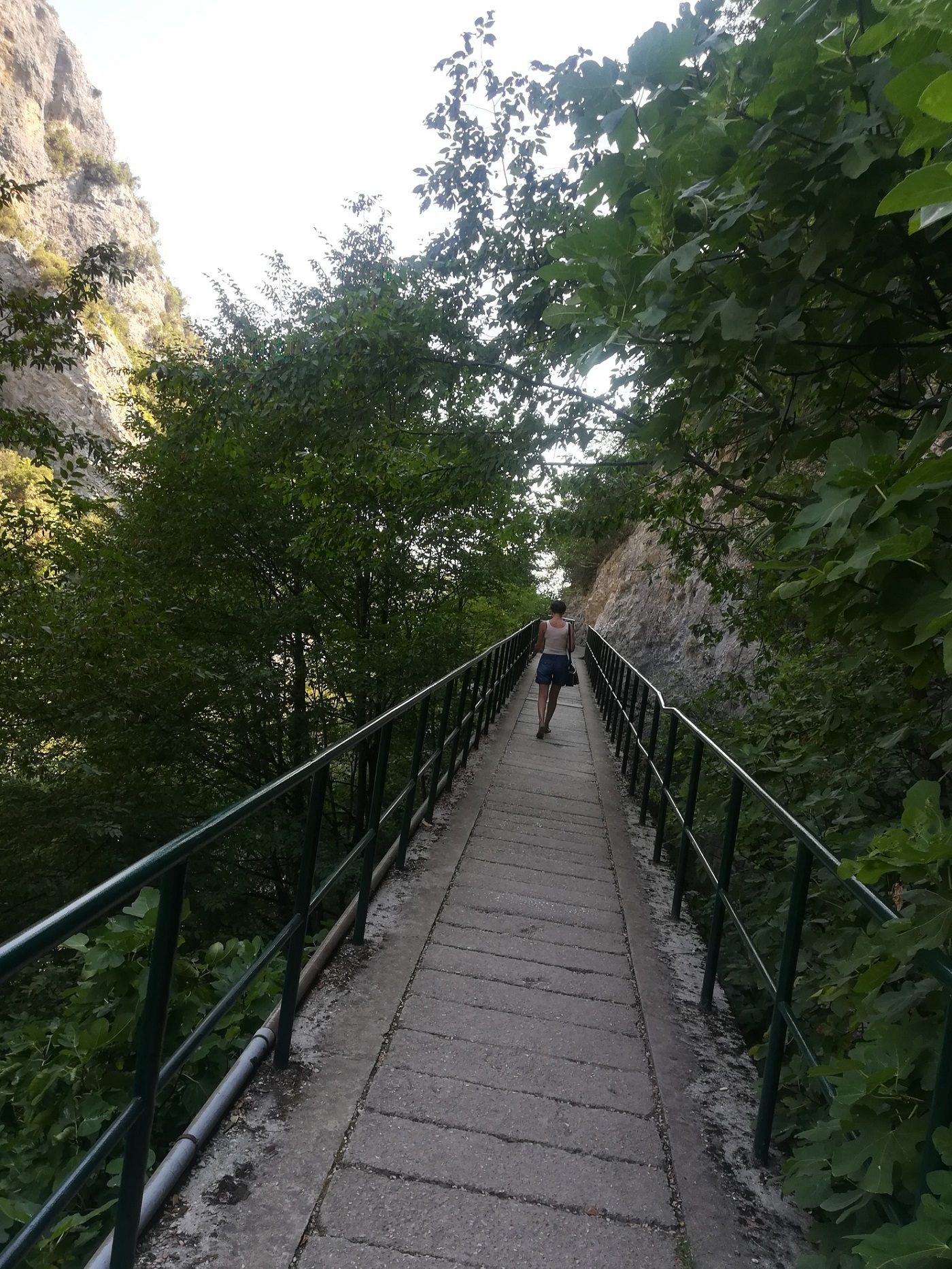 Oprim în Litochoro oraşul de piatră, construit de oameni bogaţi, cu case frumoase şi străzi pavate, de nevoie, cu cuburi de granit. Asfaltul a fost mereu luat de ploi, oraşul fiind în pantă. Lăsăm în urmă casele mari cu pisici imense, tăvălite în curţi, cu câini bucuroşi de oaspeţi, iar drumul se îngustează, apar gospodării cu capre şi oi. Nişte capre roşiatice ne privesc curios de pe o fundaţie de beton construită sub un castan. Pe un soare crud urcăm spre ”Cada lui Zeus”, locul unde legenda supune că el îşi ducea pământenele, pentru a se feri de ochiul aprig al Herei. Mai spectaculos decât ochiul de apă turcoaz în care se îmbăia zeul este drumul până acolo, prin Parcul Naţional Olimp, pe poteca nu foarte lată, dar bine amenajată cu dale de beton. Mergem pe marginea canionului, printr-un peisaj superb, tentaţi să privim mai degrabă în sus, spre piscurile conturate pe cerul adânc, decât spre prăpastia care se cască sub picioarele noastre. În faţa noastră apare un pod pe care suntem nevoiţi să trecem. Nu putem merge decât înainte. Din faţă vine un alt grup: femei cu fuste şi saboţi cu toc, cărucioare cu copii. Risc şi privesc în jos. Văd spaţiile dintre dalele de piatră şi mi se face frică. Trec pe pod în vârful picioarelor şi aproape cu ochii închişi. Scăpăm de pod şi ajungem în apropierea punctului final, dar înainte trebuie să trecem pe nişte scări construite direct în piatra muntelui. Simt că-mi pierd răbdarea, dar ajungem. Curajoşii trec peste balustrada pentru a-şi face poze mai aproape de cascadă. Coborâm. Caprele roşii, par că nu s-au mişcat din loc, privindu-ne cu aceeaşi curiozitate. Ne îmbarcăm pentru a face apoi un popas la Mănăstirea Sfântul Dionisie, construită în secolul XVI, dar şi la muzeul acesteia, unde sunt raclele cu părţi din moaştele a peste 300 de sfinţi. Tot aici, există un disc de metal dăruit mănăstirii de Ştefan cel Mare. Ascultăm povestea călugărului în biserică, tradusă pe rând de cele două însoţitoare, în timp ce fata cu tricou verde adoarme într-unul din jilţurile din faţa altarului.