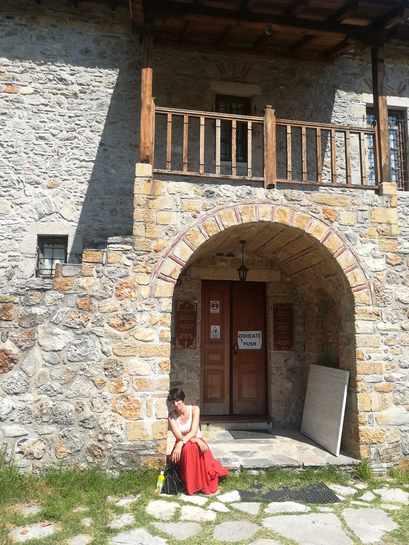În centru, biserica veche din piatră, în care se amestecau meşterii care o reabilitau, cu turişti şi cu localnici. Printre ei se plimbă preotul, cu sutană şi barbă, simpatic şi dezinhibat. La un pas de biserică, tavernele pline, magazinele cu suveniruri şi lume, foarte multă lume. Peste tot, flori, pisici grase şi oameni fericiţi. Intru într-unul din magazine, atrasă de mirosul de rodie, care venea de la coşul cu săpunuri, la care n-am rezistat. Vânzătorul cânta împreună cu radioul, şi-şi continuă fredonarea şi-n timp ce-mi dă restul.