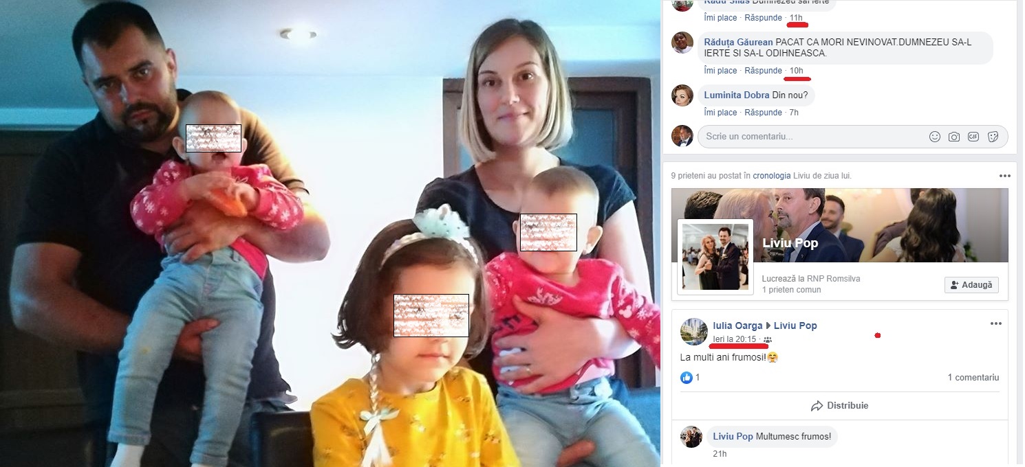 E cazul generat de moartea pădurarului Liviu Pop. Luni, 14 octombrie, tizul său, care lucrează tot la Romsilva și-a sărbătorit ziua de naștere și urările au început să curgă pe pagina sa. Și au tot venit, inclusiv ieri, 16 octombrie. Ultimele felicitări se suprapun peste mesaje de condoleanțe, după ce pădurarul de 30 de ani își găsise sfârșitul. La aceasta o fi contribuit și distribuirea pe această pagină a postărilor directorului RNP Romsilva și ale preşedintelui Federaţiei Sindicatelor din Silvicultură „Silva”. Cert e că pe aceeași pagină, se întâlneau în jurul aceluiași nume (difereau doar purtătorii lui) și urări ”La mulți ani” , și condoleanțe pentru trecerea în cealaltă nume.