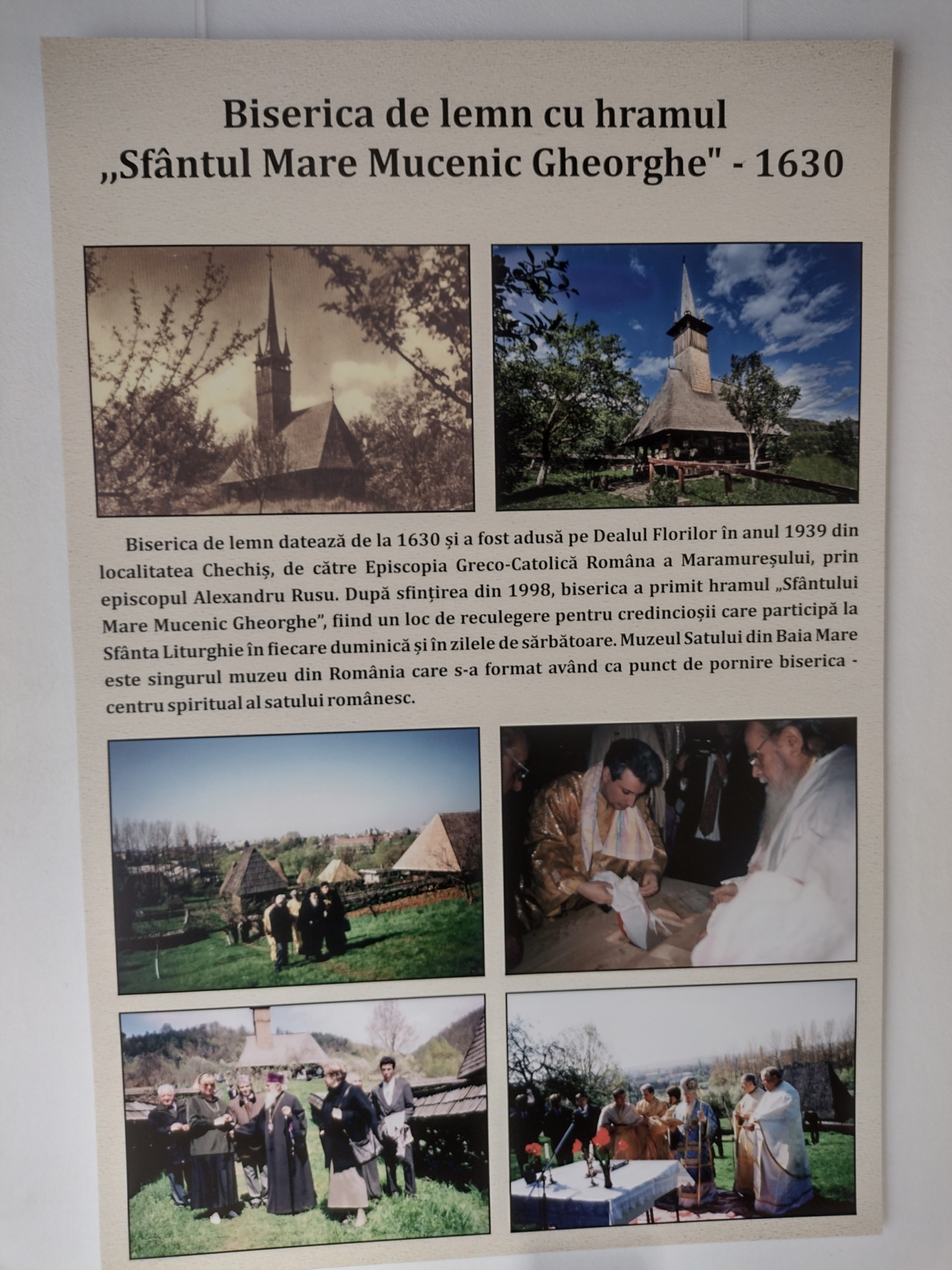 Muzeul Satului a fost întemeiat în jurul bisericii de lemn datată la 1630 și adusă pe Dealul Florilor din localitatea Chechiș în anul 1939. În anul 1972, s-a hotărât ca în jurul bisericii să se înființeze un muzeu al satului reprezentativ pentru întreaga parte de nord-vest a României. Muzeul Satului din Baia Mare este singurul din România care s-a format având ca punct de pornire biserica – centru spiritual al satului românesc.