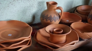 este, fără glazuri, fără lacuri, doar pământ ars în cuptor. Lutul îl luăm de aici din sat dintr-o singură zonă a satului, de pe un deal. Acolo săpăm manual, cum săpau bunicii și străbunicii. Facem o fântână ca pentru apă și îl găsim la o adâncime între 8 și 12 m. Pâmântul e foarte gras, parcă are o grăsime naturală în consistență. Datorită proprietăților pe care le are lutul, ceramica se poate folosi așa simplă, naturală. Se poate fierbe în ea, se poate găti. Ca formă, tehnică și modele e ceramică dacică. Singurul model care se face este zig-zagul sau unda apei. Este același model care se găsește și pe porțile maramureșene, la șatră, la acoperișuri etc., doar că denumirea diferă de la o zonă la alta.