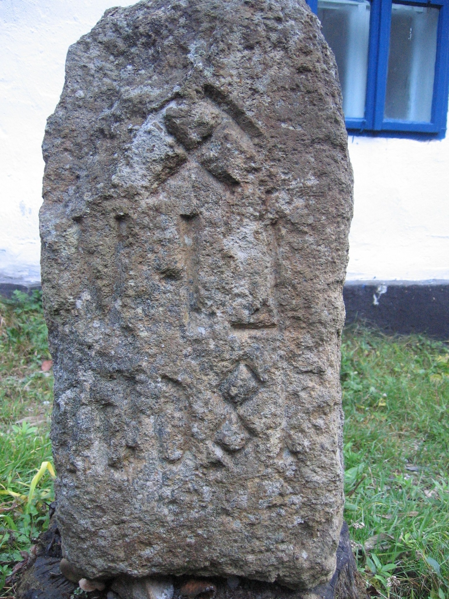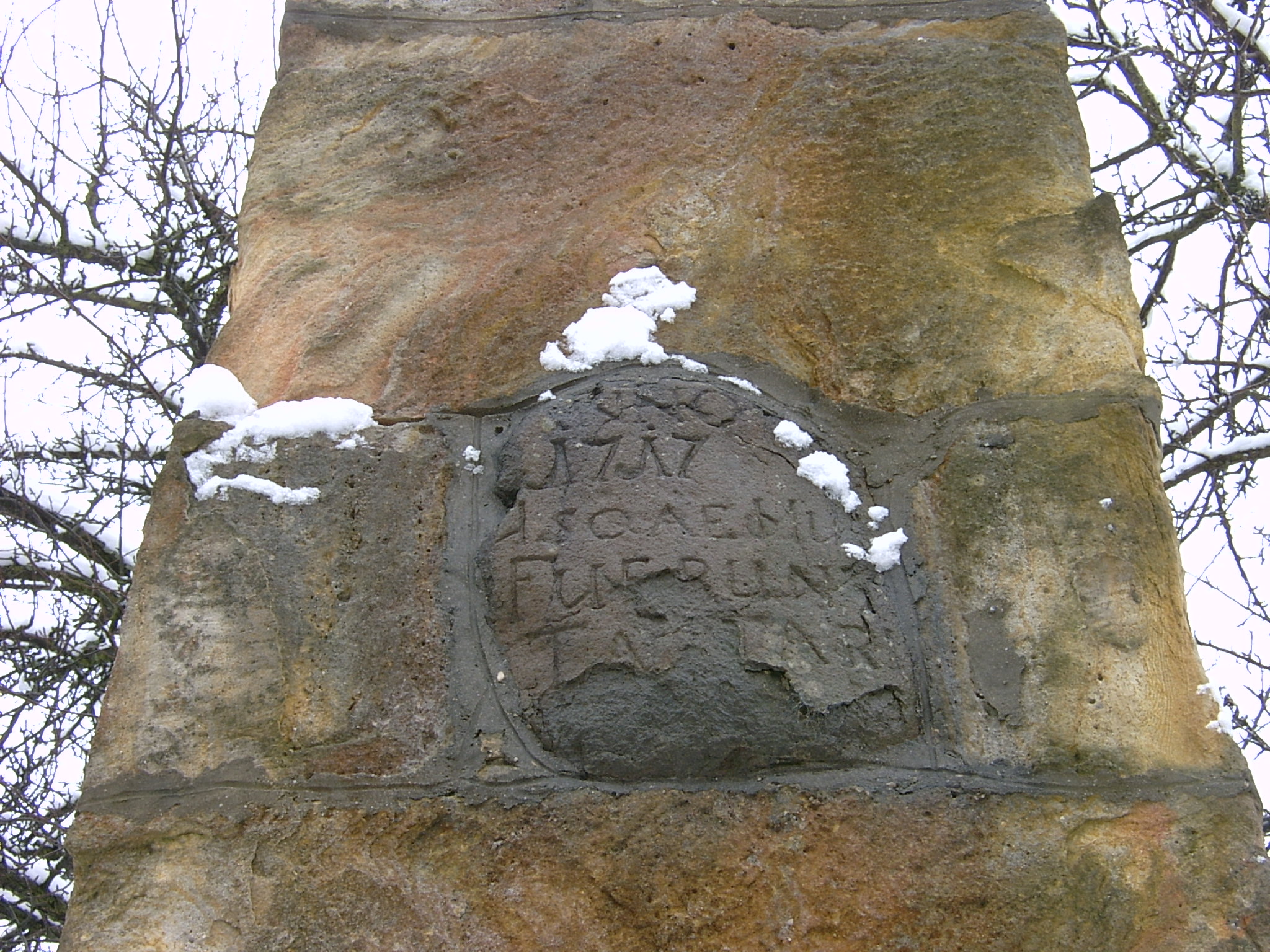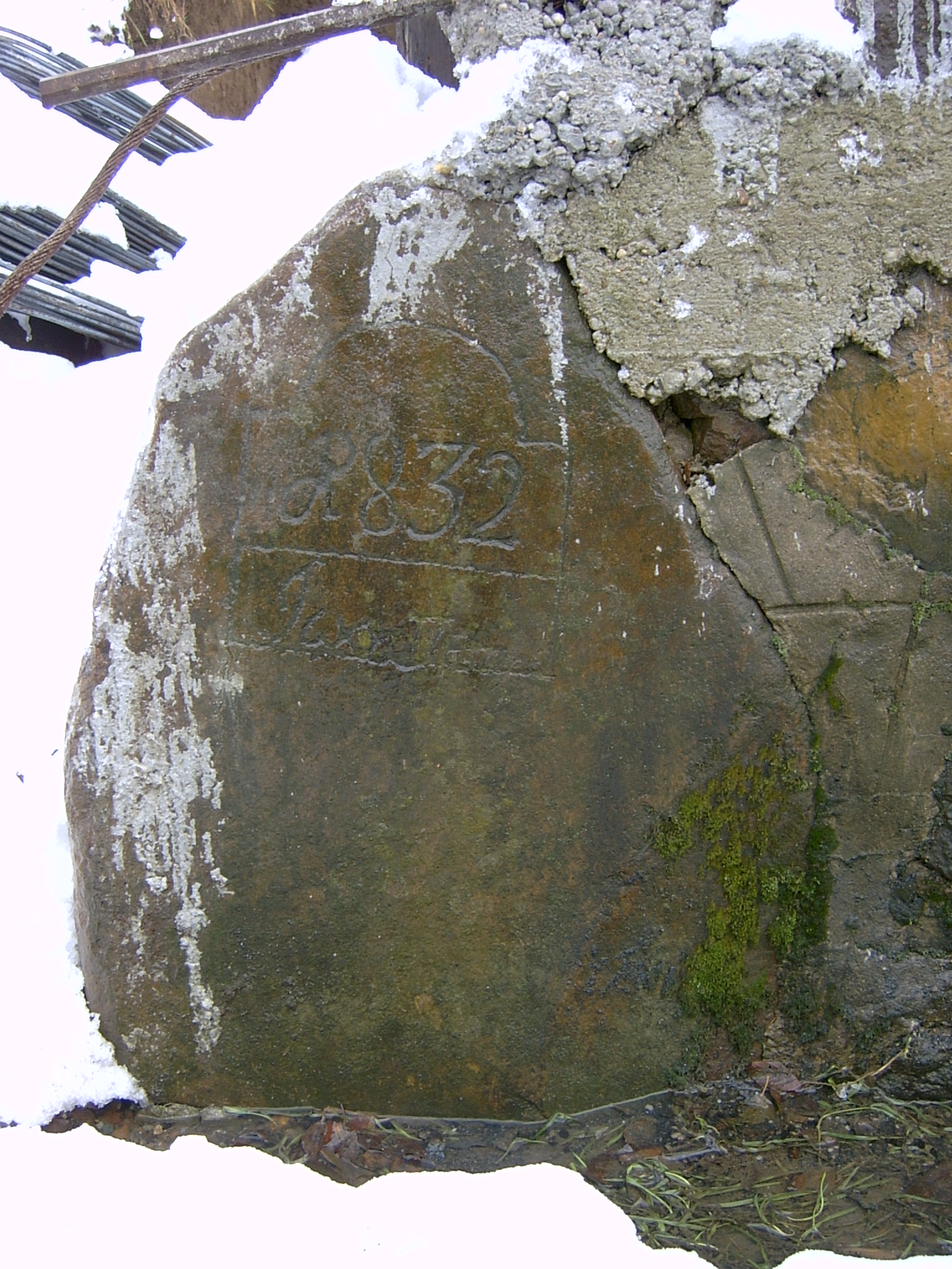 „La o casă, este un stâlp din andezit (vezi foto), pe care sunt gravate ciocanul și târnăcopul de miner, încrucișate, inscripția L-IV și anul1865. Se pare că acest stâlp marca mejda dintre concesiuni miniere.
