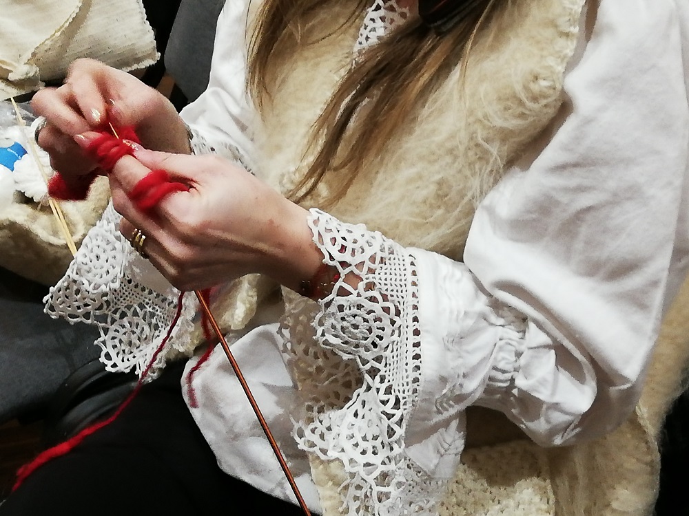 În satul din inima oraşului, povestea şezătorii se construieşte zi de zi. Evenimentul – lansat mai întâi ca o invitaţie pentru câteva doamne pasionate de lucru de mână – a căpătat nu doar contur, ci şi amploare. Femei de toate vârstele şi profesiile, copii mari şi mici, dar şi câţiva bărbaţi au venit la cea de-a doua şezătoare din acest an, organizată la Muzeul de Etnografie şi Artă Populară Baia Mare la sfârşitul acestei săptămâni. În decorul cald al muzeului, cu scaunele aranjate, cu masa pregătită cu prăjituri, pancove şi ceai, cu muzica mergând în surdină, s-a cusut, s-a tricotat, s-a ţesut, s-a făcut dantelă, broderie şi frivolite, dar şi zgărdane şi pictură pe placaj.