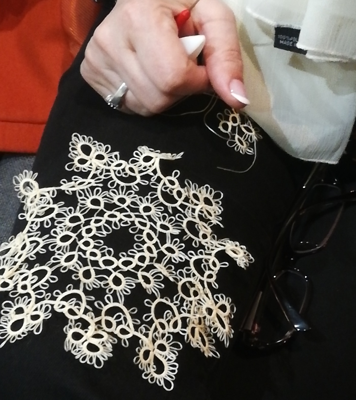 Poveştile se leagă ca-ntre vechi cunoştinţe şi nimeni nu pare stingher. Fiecare lucru de mână are istoria şi parfumul lui. Împătimită a lucrului de mână, Iulia Costin îşi aminteşte că, acum mulţi ani, ea şi-a făcut rochia de logodnă din mătase vişinie, cu croşeta. Acum tricotează pulovere pentru nepoţi şi povesteşte că, în vizitele ei prin străinătate, a avut prilejul să vadă cât de apreciate erau tricotajele făcute de ea pentru copii şi nepoţi.
