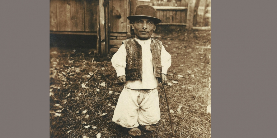 Pe rețelele de socializare circulă o fotografie cu un bărbat pitic îmbrăcat în port popular. Acesta a fost învățătorul satului Vișeu de Sus în anii Primului Război Mondial.