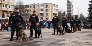 Momentul mult aşteptat a fost apariţia câinilor poliţişti: Teba, Vis, Bella, Snow, Max, Sara, Alexa, Jack şi Tap. A urmat apoi un exerciţiu demonstrativ pregătit de Grupa Canină: a fost simulată o situaţie de scandal într-un local public, în care mai multe persoane, aflate într-o avansată stare de ebrietate, provoacă distrugeri şi nu răspund somaţiilor echipajului de poliţie venit la faţa locului în urma unui apel la 112.